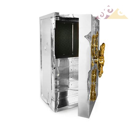 Стальной сейф MILLIONAIRE Luxury Silver. Современный дизайн этого сейфа не способен оставить кого-либо равнодушным. Интерьер имеет множество ящиков и дверь с отдельными замками.