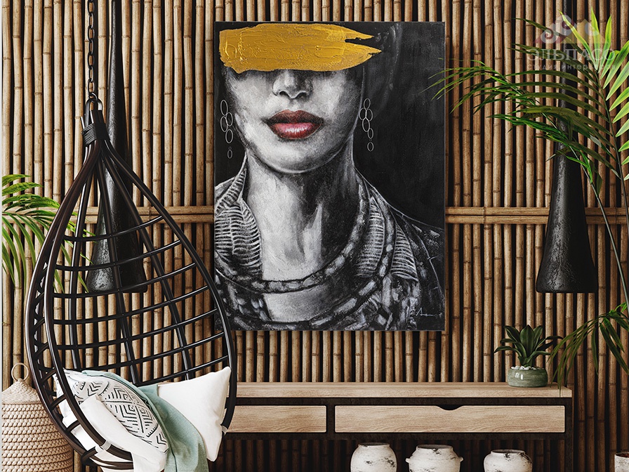 Высота:120 смСовременная монохромная акриловая картина девушки Antifaz фабрики Schuller с золотым акцентом. Прямые поставки от фабрики Schuller - самые актуальные предметы интерьера со складов Валенсии и Москвы.