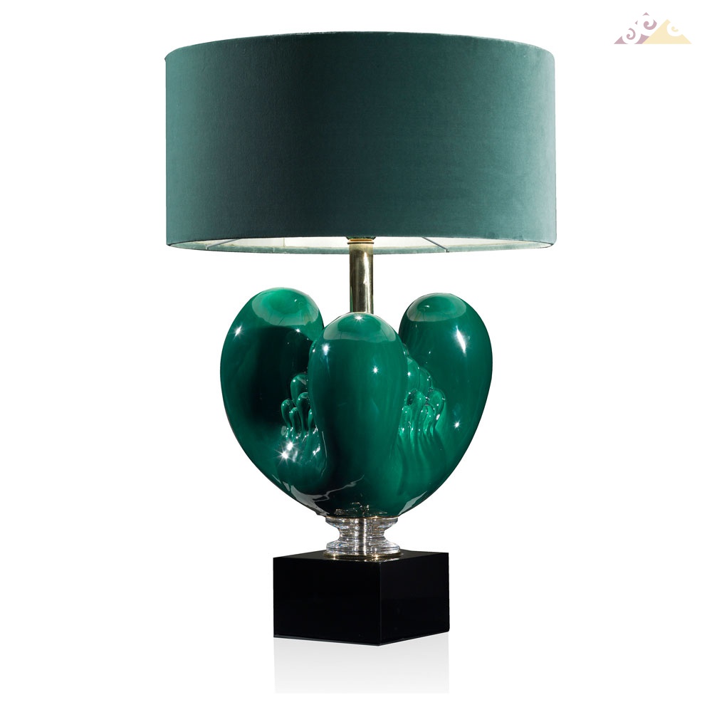 Лампа из застекленной майолики, на глянцевой - лаковой черной деревянной основе с хрустальной деталью. 1xE27 60W Вес: 12 кг