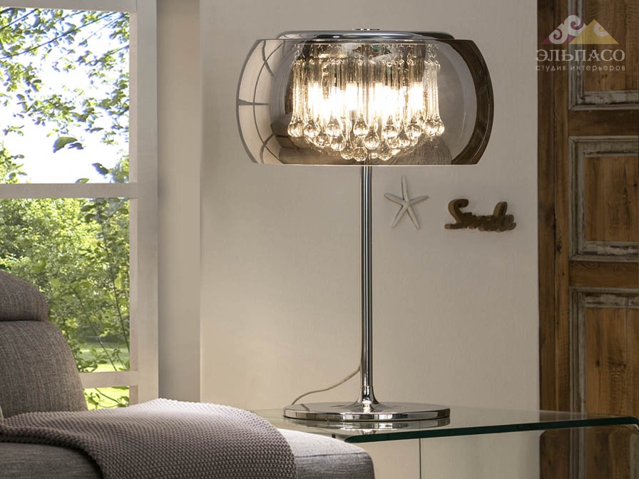 Высота:61 смНастольная лампа Schuller Argos Art. 508222 из металла с покрытием "хром", плафон из зеркального стекла с подвесками внутри из стекла подобного муранскому, макс.высота 145 см, 6 G9 макс. 40w.
