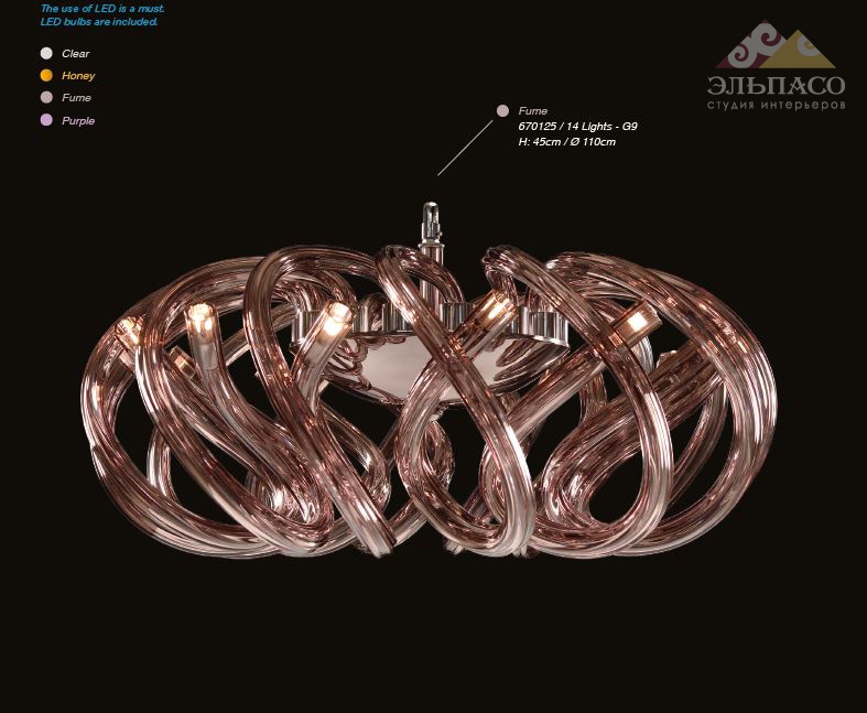 Люстра Arcadia - нежная и хрупкая конструкция, созданная руками талантливых мастеров от фабрики Iris Cristal. Необычный дизайн воплощен с помощью эксклюзивного материала - богемского хрусталя, и металла с хромированным покрытием. Полые трубки из бронзового хрусталя с рифленой поверхностью, это, одновременно, и кронштейны, и плафоны: светоточки закреплены изнутри, на концах трубок. Внутри них скрыта и арматура, и провода. Lights 14
