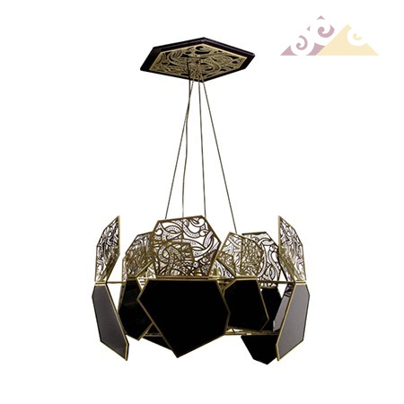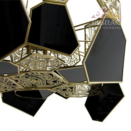 Изящная и элегантная люстра будет гипнотизировать свою аудиторию, утонченным узорам из металла на черном лакированном дереве. Вес 67 кг.