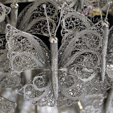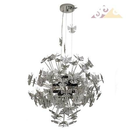 Люстра НИМФА - это изящные металлические бабочки парящие в воздухе в полной гармонии, благодаря чему придают роскошную форму люстре. Вес 29 кг. Отделка в золоте, никель или латунь. Люстра ручной работы.