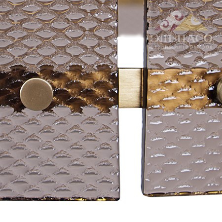 Подвесная люстра АМАРЕТТО Португальской фабрики KOKET. Основание из металла с закаленными стеклянными панелями и декоративным металлическим поясом украшенным крокодиловым элементом. Вес 31 кг.