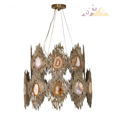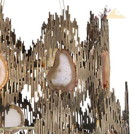 Люстра VIVRE - это изысканная старинная деталь в современном профиле, темные нейтральные тона и изысканный узор в камне Агат. Основание светильника из металла. Вес 95кг.