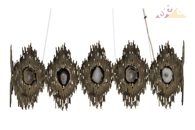Люстра VIVRE - это изысканная старинная деталь в современном профиле, темные нейтральные тона и изысканный узор в камне Агат. Основание светильника из металла. Вес 95кг.