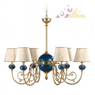 Ville люстра на шесть ламп в латуни с декоративными керамическими элементами.