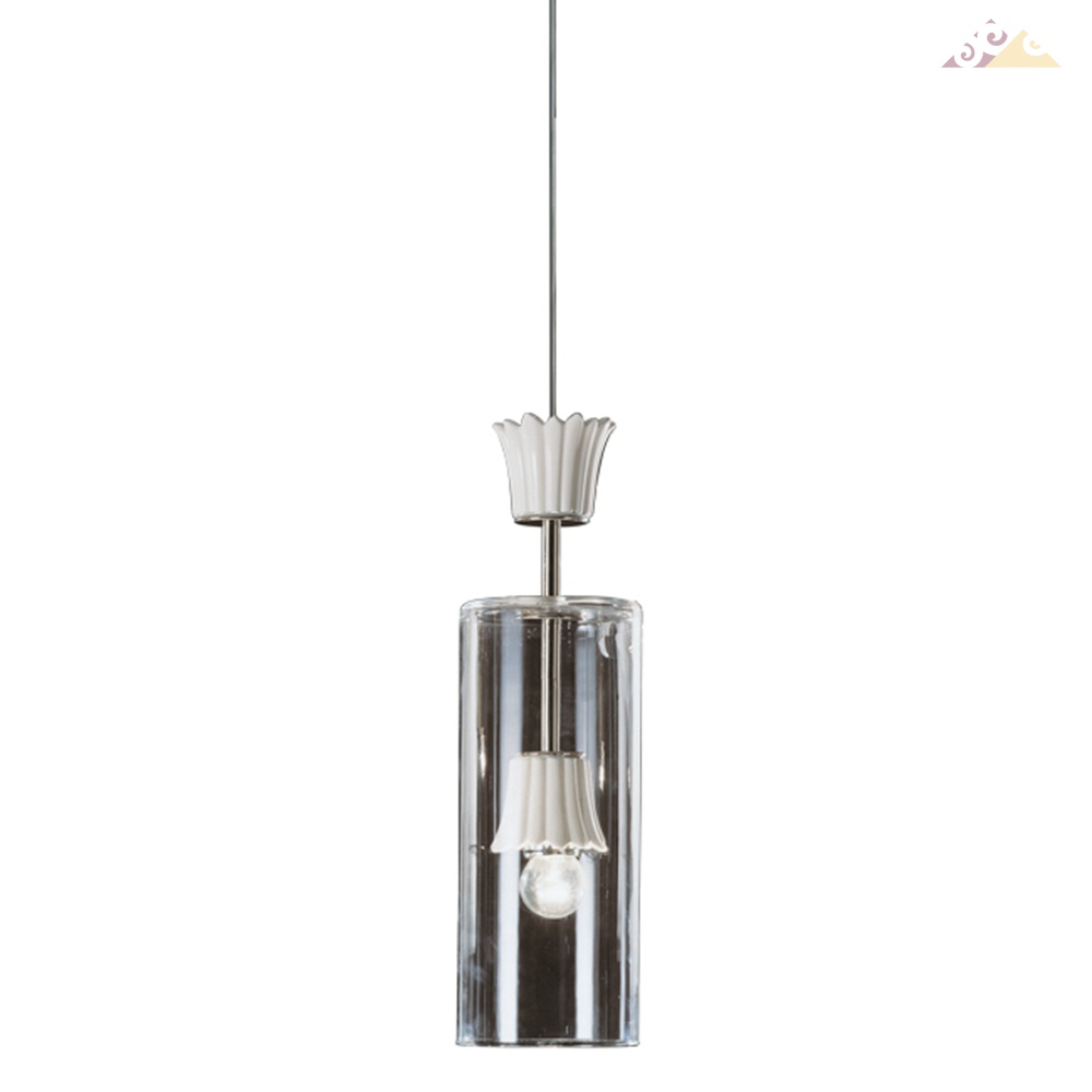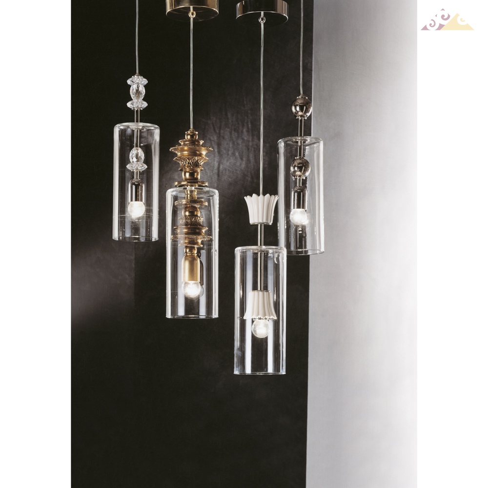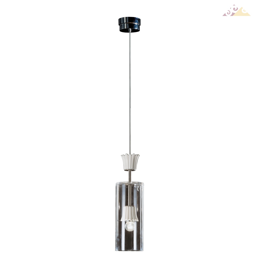 Подвесной светильник с хрустальной чашкой, белая майолика и латунь. 1xE27 60W Вес: 6 кг