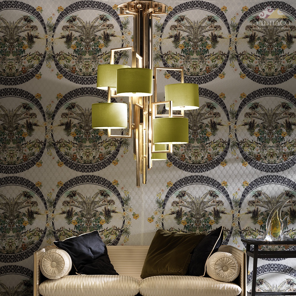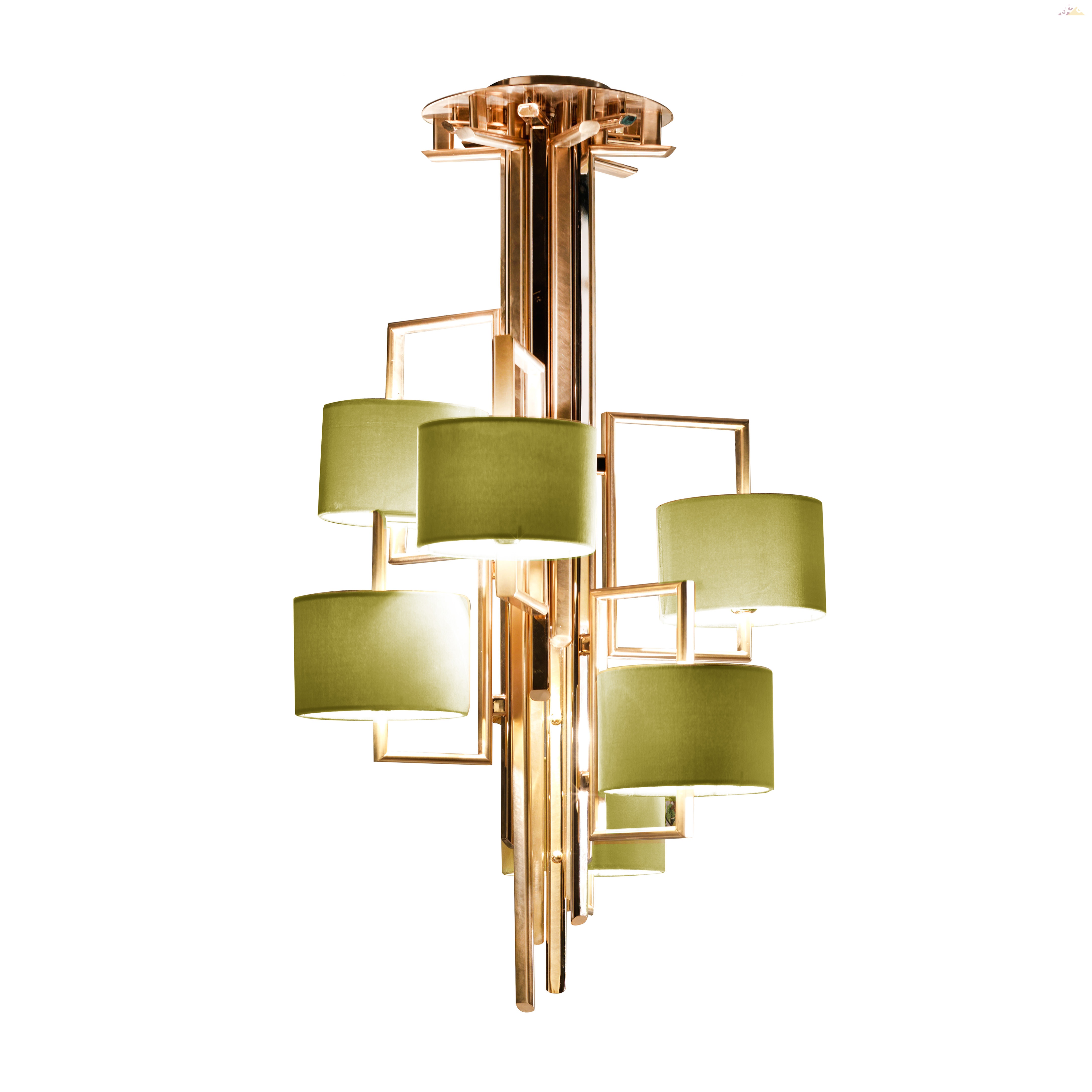 Латунная люстра в блестящей золотой отделке. Бархатные абажуры зеленого цвета, также доступны в шелке. 6xE27 60W Вес: 24,50 кг