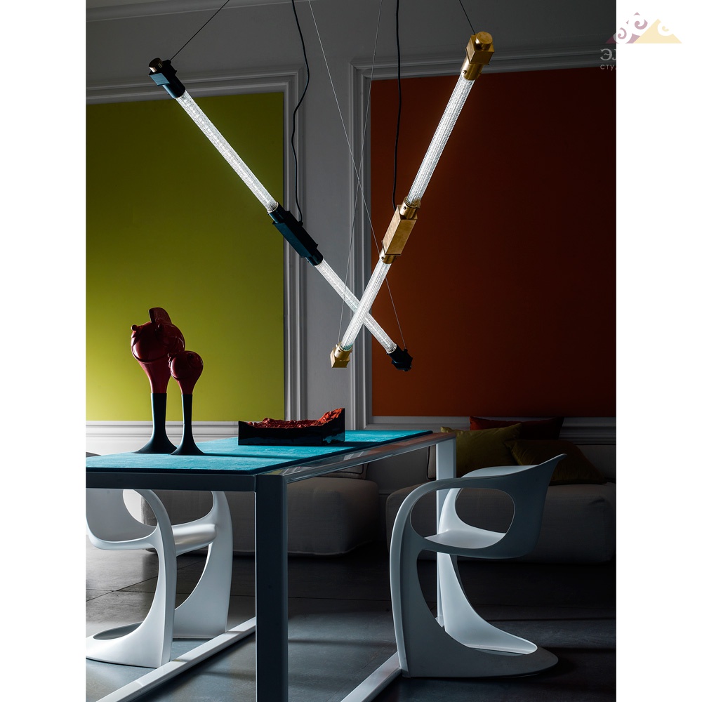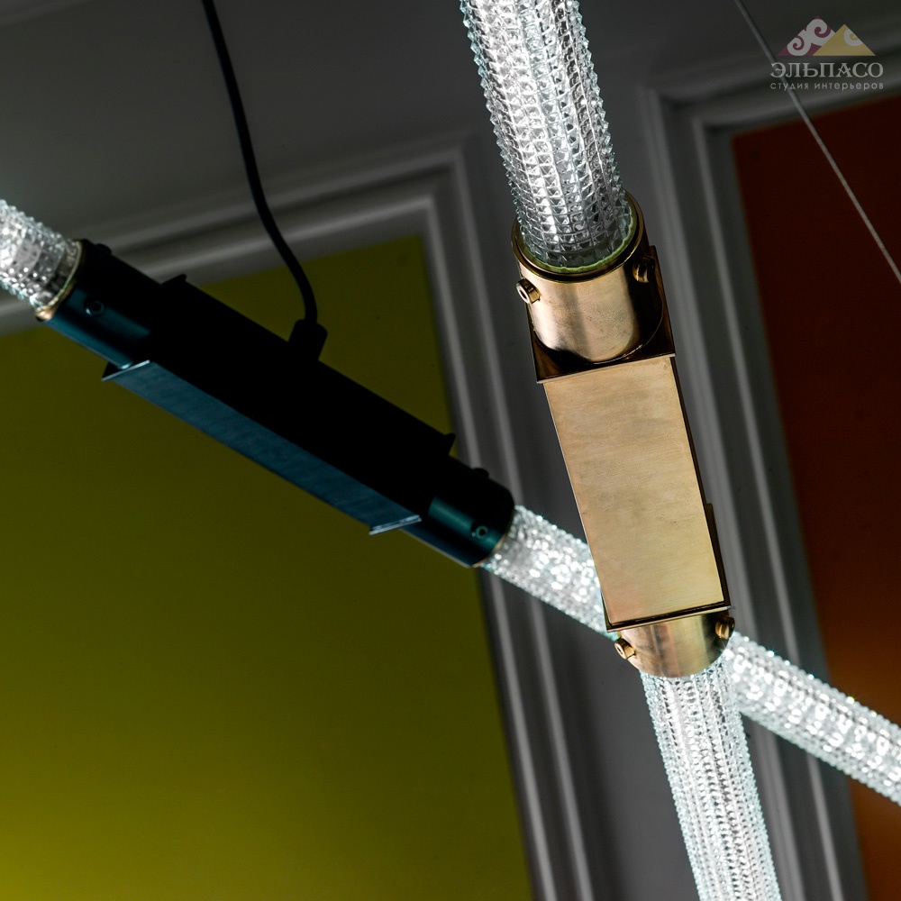 Современная  люстра из стекла с латунным декорам, на стальных тросах. 20W Power Led K4000 - K3000 Вес: 7 кг