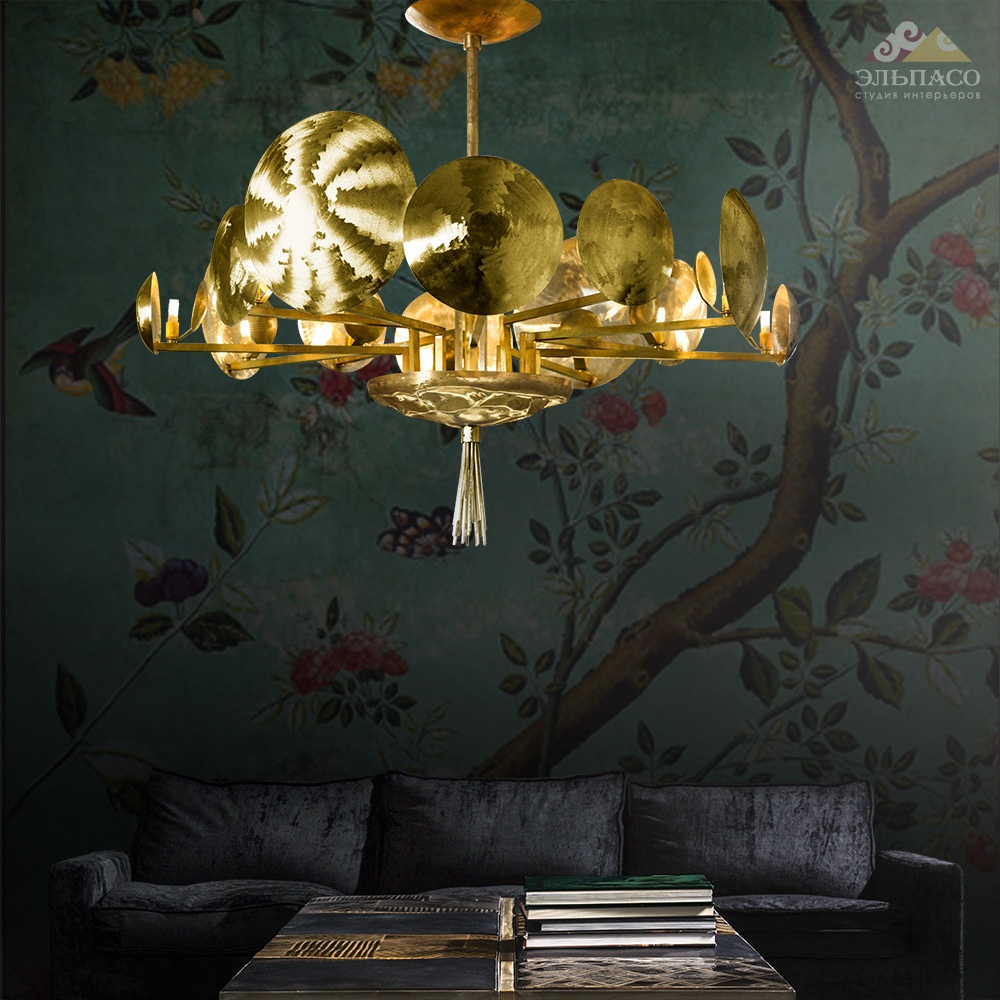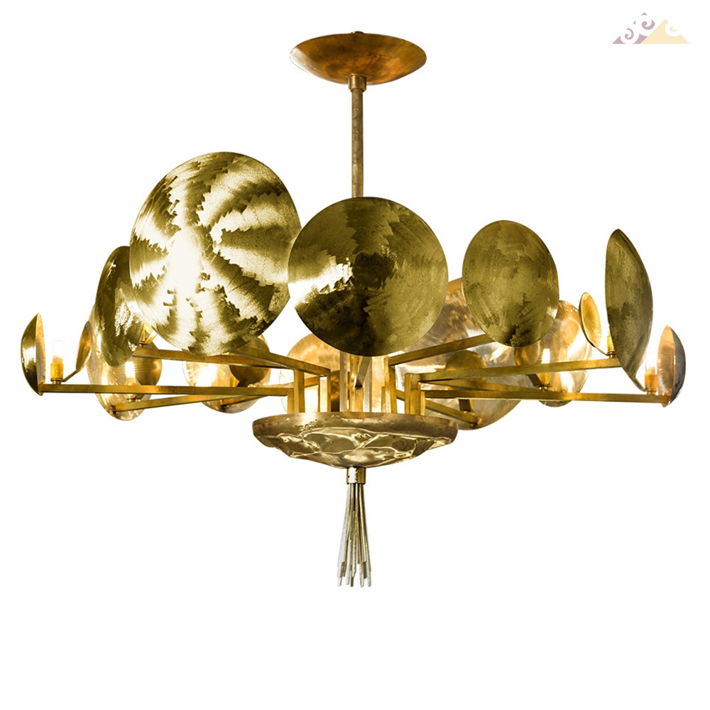 Большая люстра из натуральной латуни в золотой отделке - современный стиль. 12xG9 LED  Вес: 15 кг