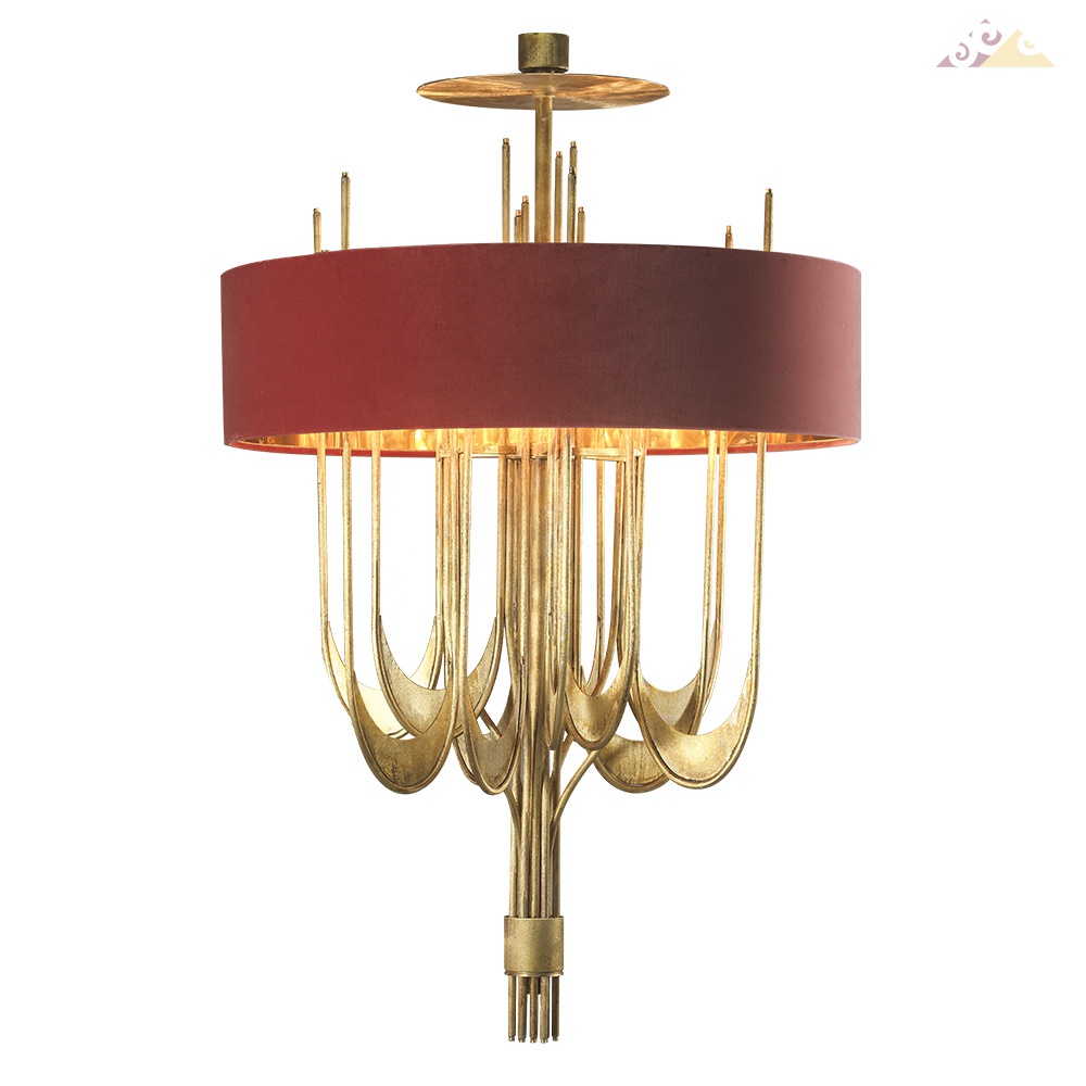 Подвесная лампа из бронзового литья в отделке «эффект ткани». Бархатный абажур с золотом внутри. E14 - 40W x 12 Вес: 25 кг