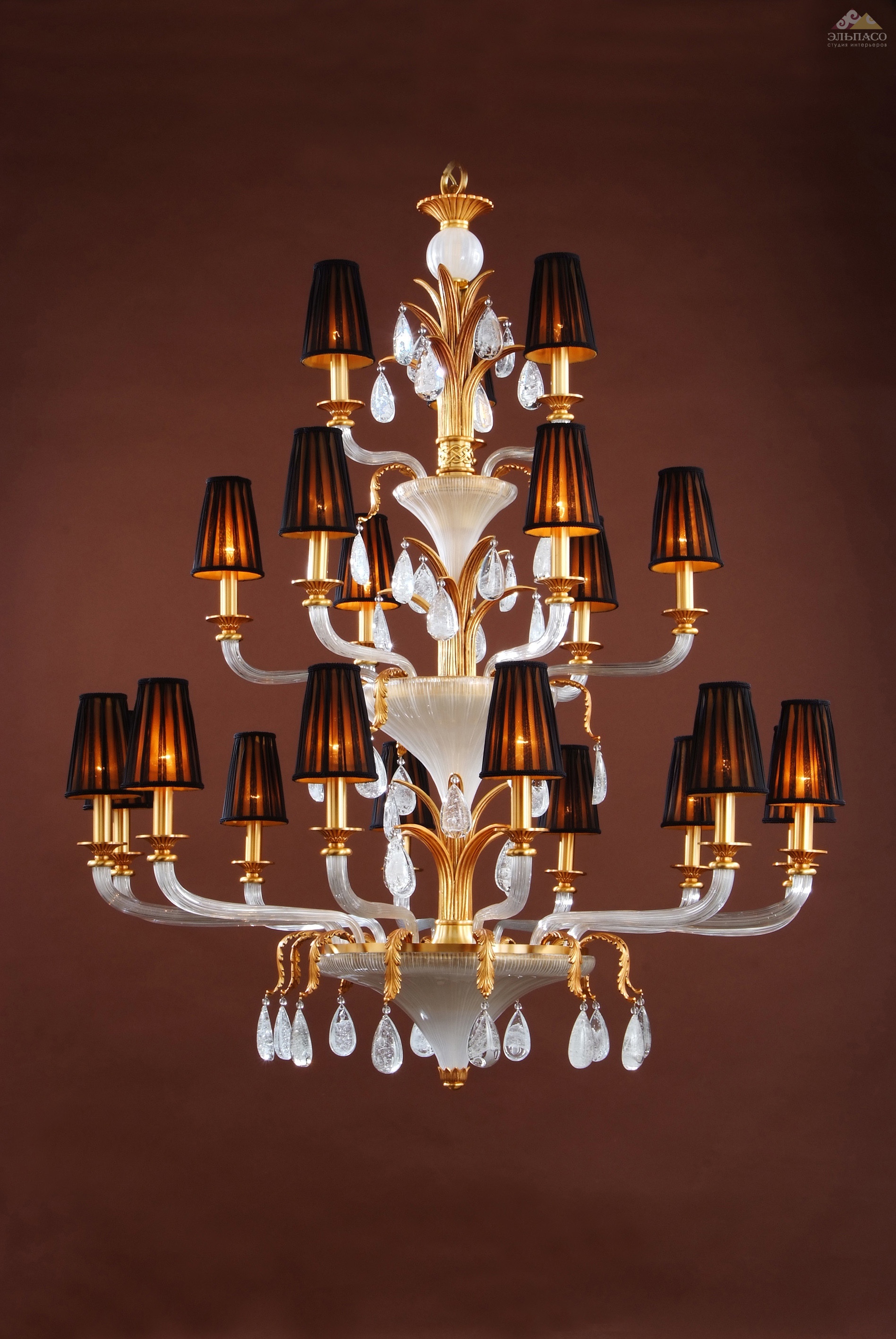 Стильная люстра Mariner Аrt.19800 на 21 лампочку стандарта Е14. Корпус модели изготовлен из литой бронзы. Поверхности полированы вручную, украшены классическими орнаментами и деталями из венецианского стекла. Элементы декора покрыты тонким слоем французского золота. Каждая лампочка прикрыта отдельным абажуром в отделке черное золото. Стиль, красота, величие.