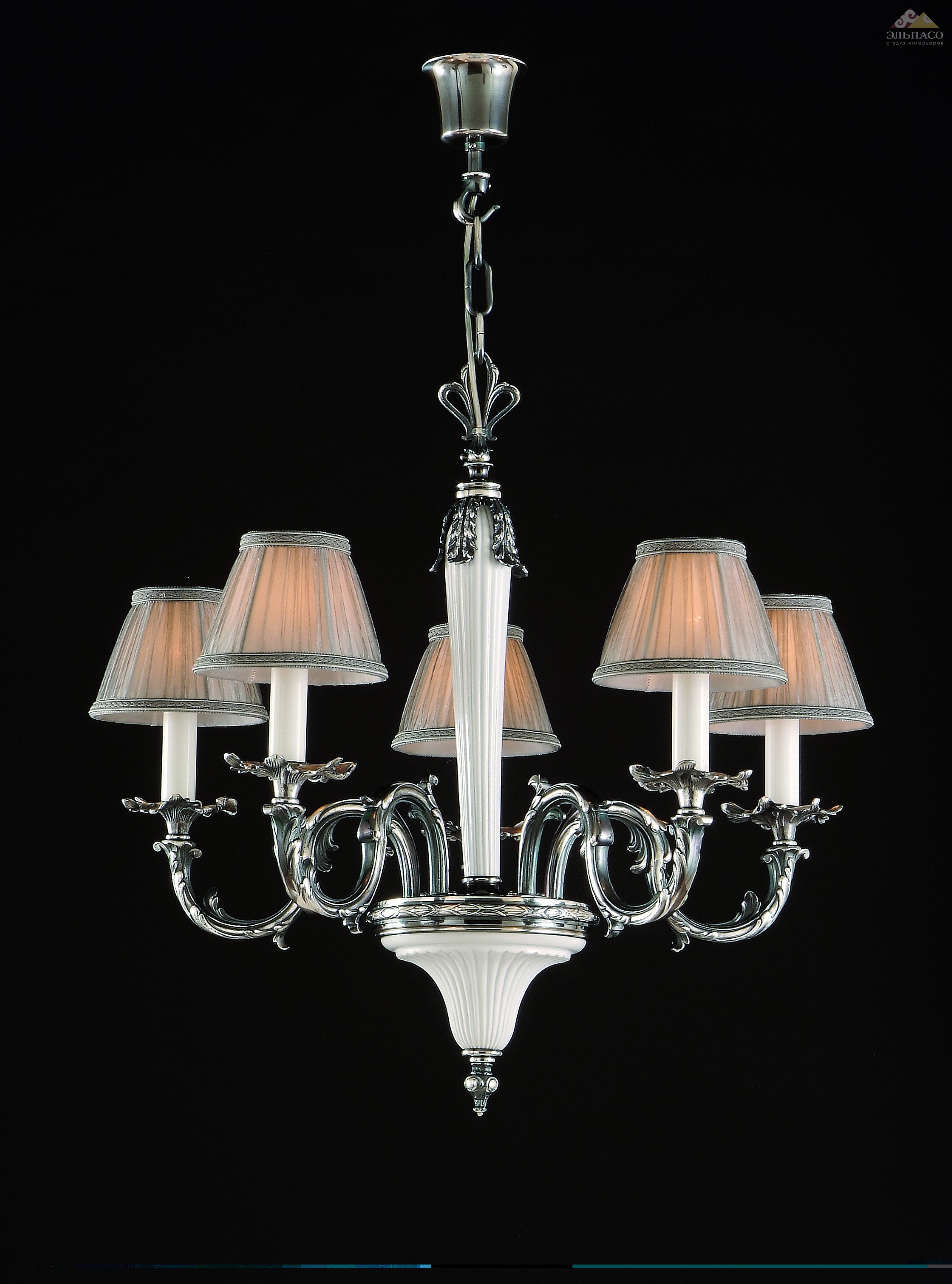 Роскошная люстра Mariner Аrt.19897.1 на пять лампочек стандарта Е14. Корпус модели изготовлен из литой бронзы. Поверхности полированы вручную, украшены классическими орнаментами. Элементы декора покрыты тонким слоем состаренного серебра. Каркас светильника выполнен из белого фарфора. Каждая лампочка прикрыта отдельным абажуром, серебряного цвета. Изящность, уникальность, практичность.