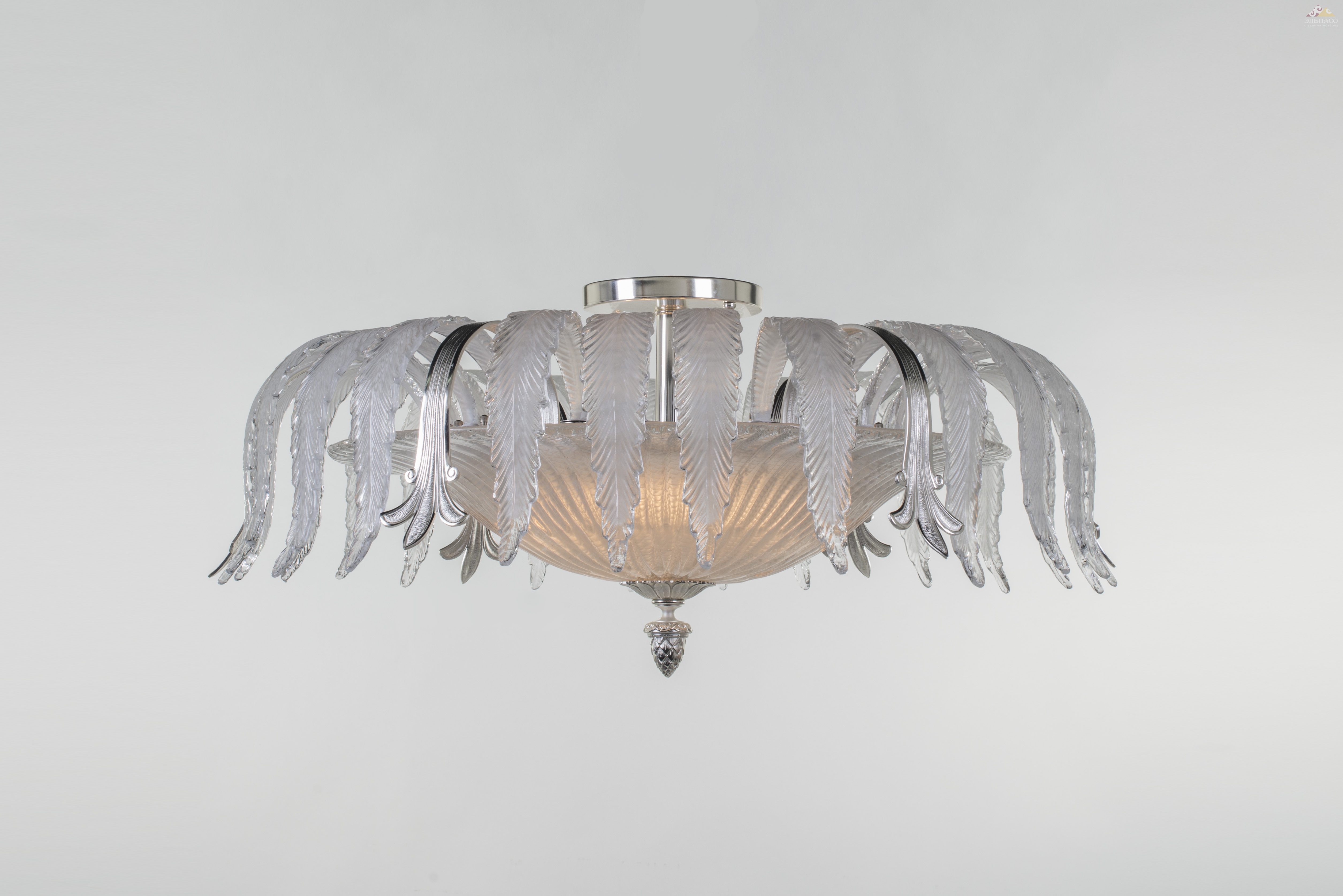 Изящная люстра Mariner Аrt.20076.1 в виде плафона потолочной конструкции, на десять лампочек стандарта Е14. Корпус модели изготовлен из литой бронзы. Поверхности полированы вручную и украшены классическими орнаментами. Элементы декора покрыты тонким слоем античного серебра. Вся люстра отделана фигурными лепестками из венецианского стекла. Роскошь, исключительность, престиж.