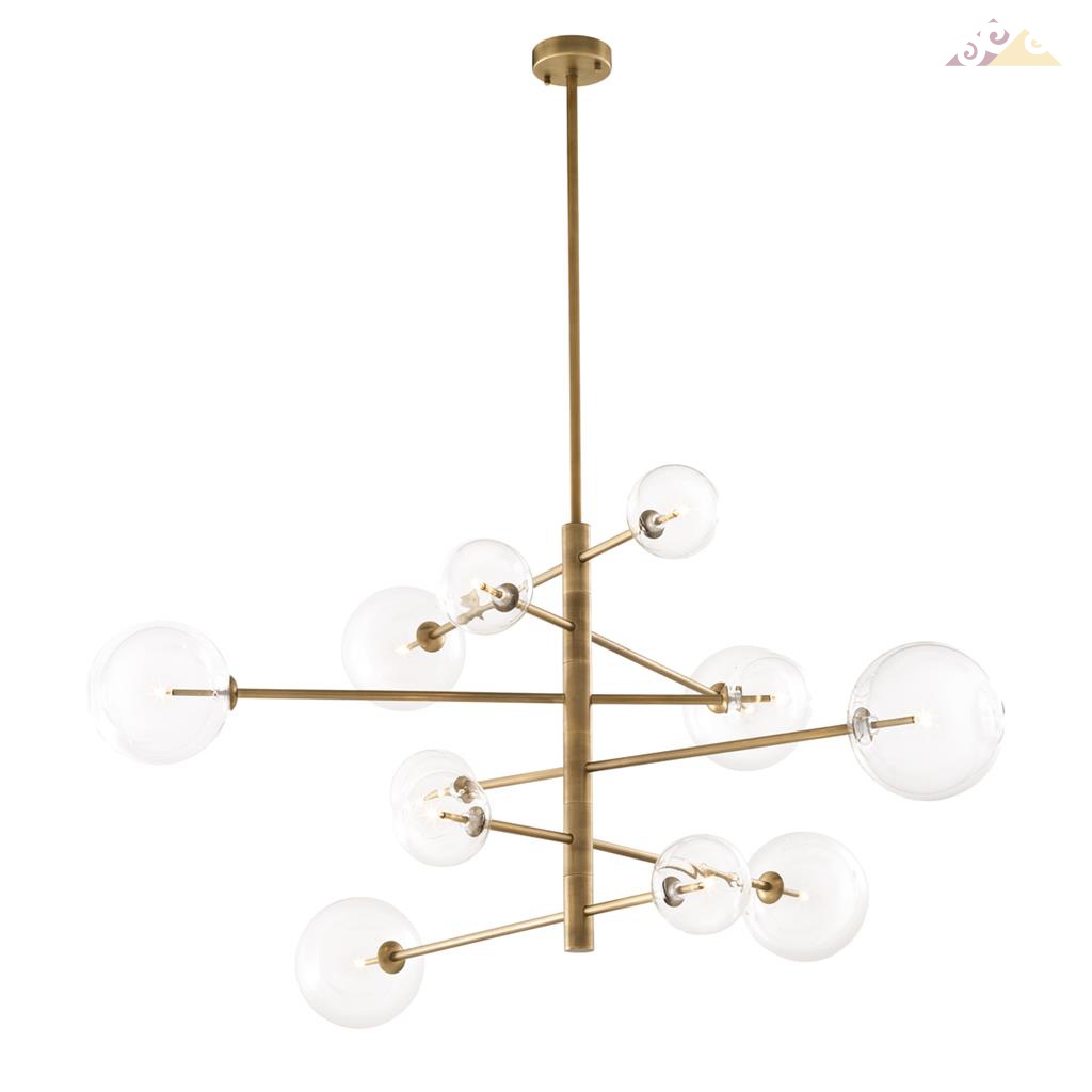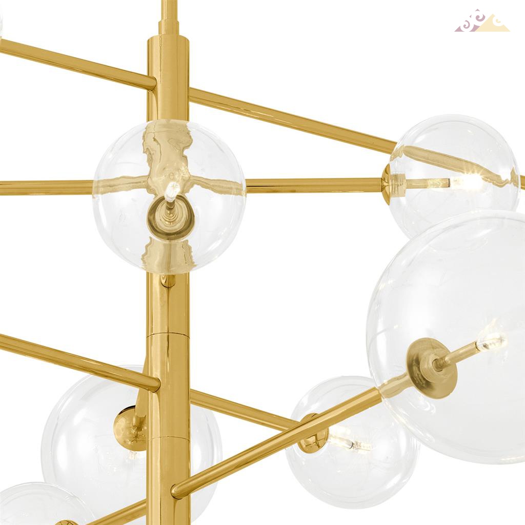 Высота:67 смЛюстра Argento L фабрики Eichholtz. Металлический каркас - золотого цвета с двенадцатью круглыми, прозрачными плафонами. Люстра подходит для интерьеров в Лофт стиле.