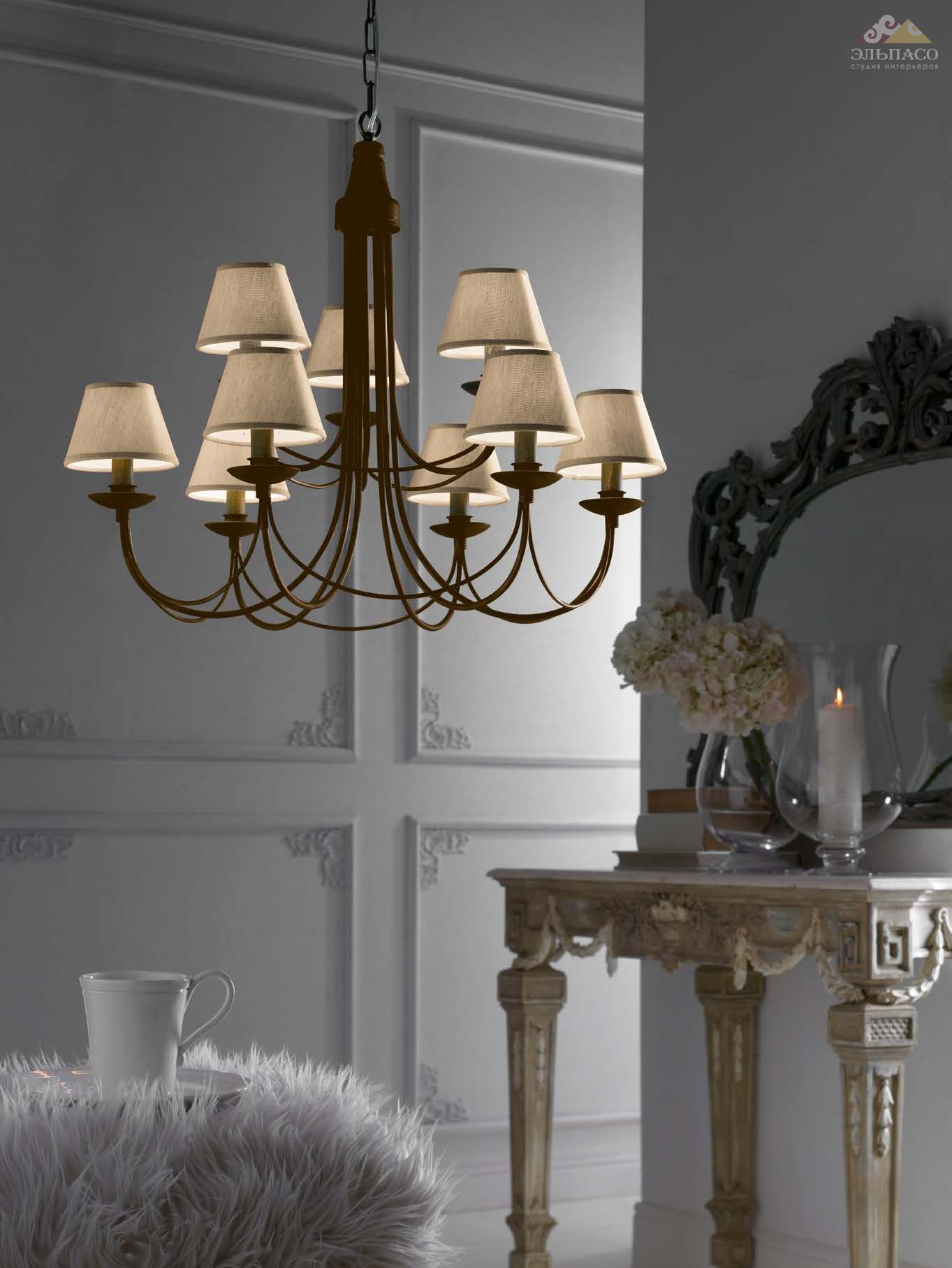 Стильная модель люстры для зала, гостиной комнаты и других помещений. Основание люстры изготовлено из стали шоколадного цвета ручной ковки. Абажуры люстры изготовлены из плотной ткани крупного плетения кремового цвета. Элегантность и стиль.