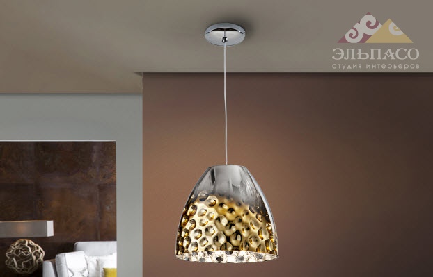 Высота:27 смПодвесной светильник SCHULLER ALEXIA Art.436174 из металла с покрытием "хром". Плафон из выдувного стекла с выделкой волнами в плавном цветовом переходе от хромированного до золотистого цвета.