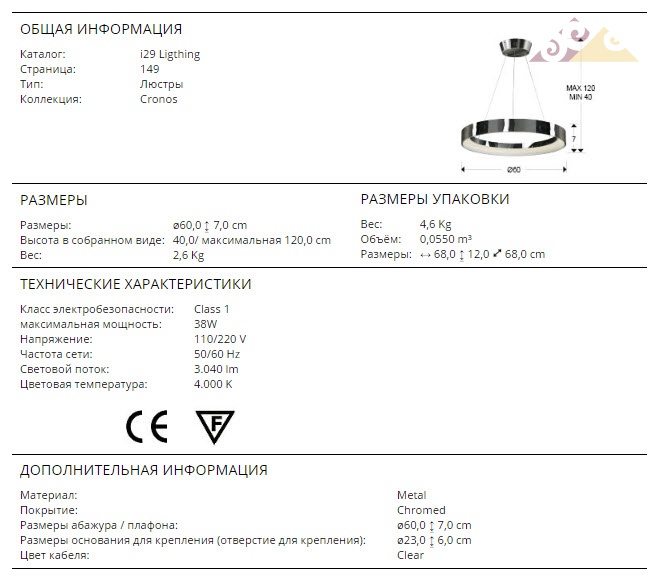 Высота:7 смПодвесной большой светодиодный светильник SCHULLER CRONOS Art.152457 из металла с покрытием "хром". Скрытое освещение, светодиодная лента 38W led, 3.040 Lm, 4.000 K, с регулируемой высотой.