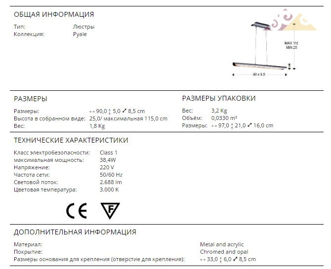 Высота:5 смПодвесной светодиодный светильник SCHULLER PYALE Art.651768 из металла с покрытием "хром". Рассеиватель из опалового акрила, 38W LED, 2688 Lm, 3000 K.