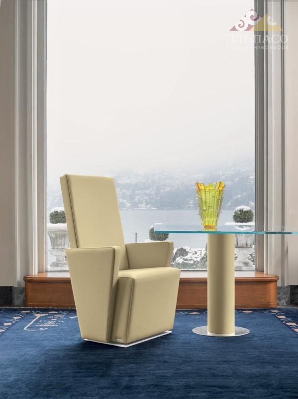 Презентабельное поворотное кресло с высокой спинкой, идеально подходит для офисных решений и общественных залов ожидания, из уникальной коллекции Tornosubito от фабрики Mascheroni. Каркас модели изготовлен из массива дерева и обтянут натуральной кожей из ассортимента фабрики. Мягкие части кресла выполнены из пенополиуретана, с дакроновым покрытием, и усилены эластичными ремнями. Поворотный механизм автоматически возвращает кресло в исходное положение. Основание выполнено из высокопрочной стали. Отличный комфорт, элегантность и изысканный дизайн. Каждый итальянский ручной продукт Mascheroni отмечен пластиной с выгравированной маркой «Mascheroni srl Made in Italy», которая подтверждает ее подлинность.
