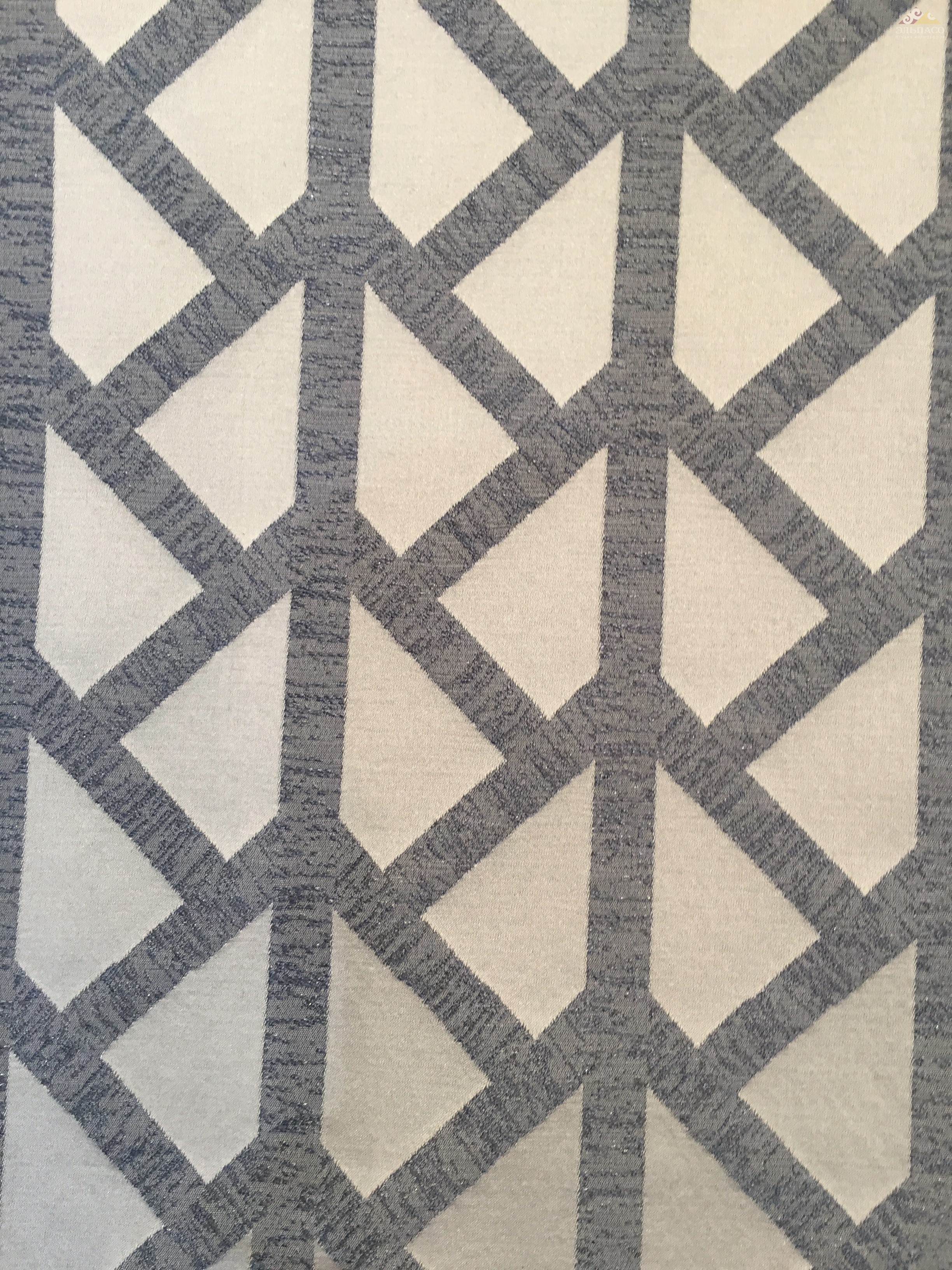 Ширина:140 смСерая ткань с геометрической решеткой подойдет в современный интерьер и наполнить любое помещение изысканностью. Ткань можно использовать для обивки декоративных подушек и покрывал.