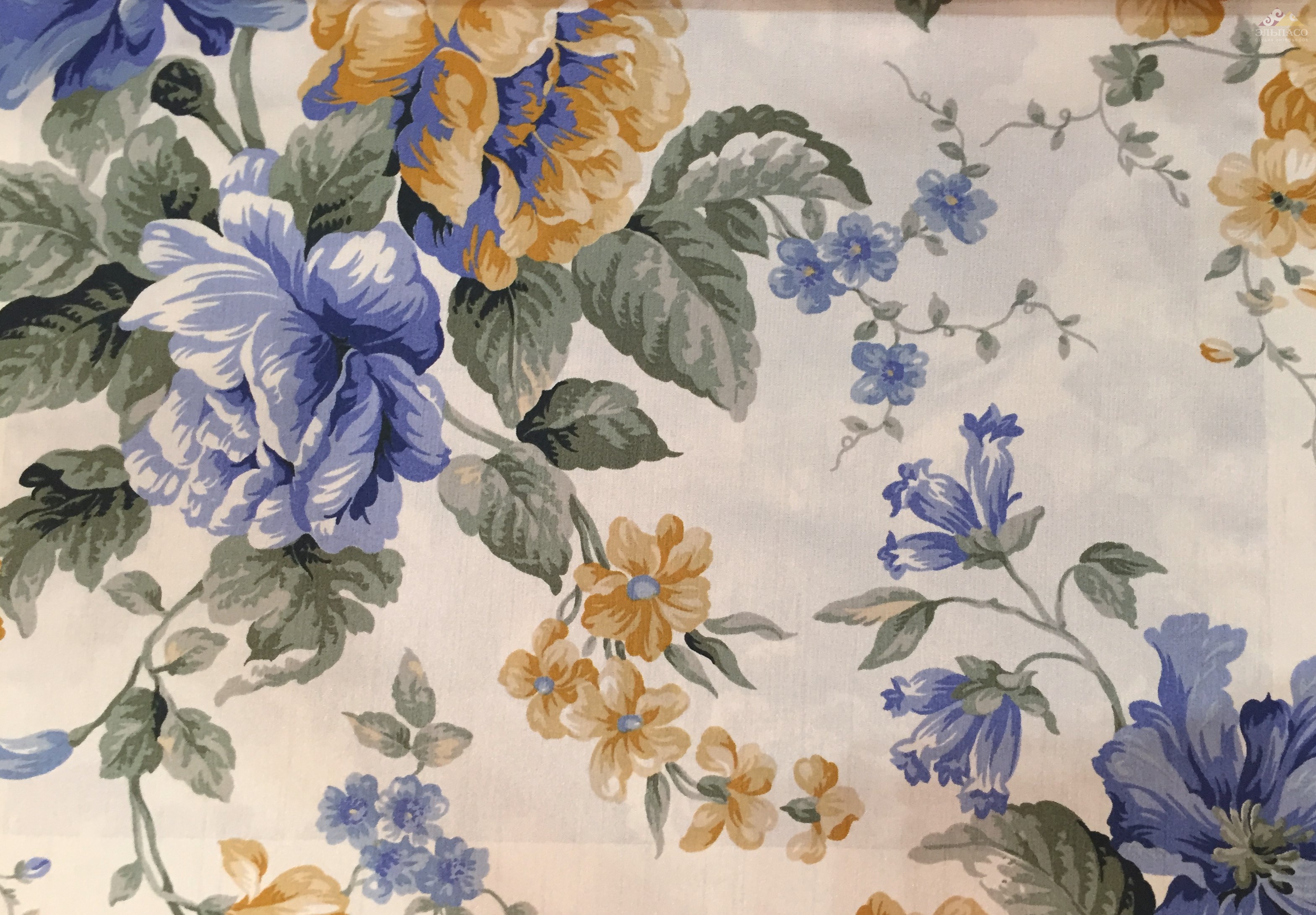 Яркая ткань с цветочным дизайном. Рекомендуем для оформления интерьеров в английском стиле. Яркие цветочные букеты с крупными бутонами цветов и компаньонами с мелким аналогичным цветочным орнаментом представлены на блестящей плотной основе с шелковистой текстурой.