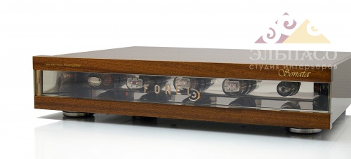 Фонокорректор FONEL MM "Sonata" - для картриджей ММ-типа.Особенности:массивные тороидальные трансформаторы в системе питания,стабилизированное питание нитей накала ламп, точный фильтр высокого напряжения,оригинальная система оптимизации лампового каскада, минимизирующая искажения и помехи,пассивные цепи RIAA собраны на точных плёночных резисторах и конденсаторах,использование во входном каскаде качественных ламп и мс-трансформаторов "FONEL".Антирезонансный стальной корпус фонокорректоров FONEL, с боковыми частями фрезерованными из цельного метала, одновременно массивен и филигранен. Он был специально сконструирован для уменьшения обратной акустической связи и микрофонного эффекта.