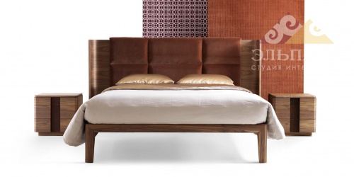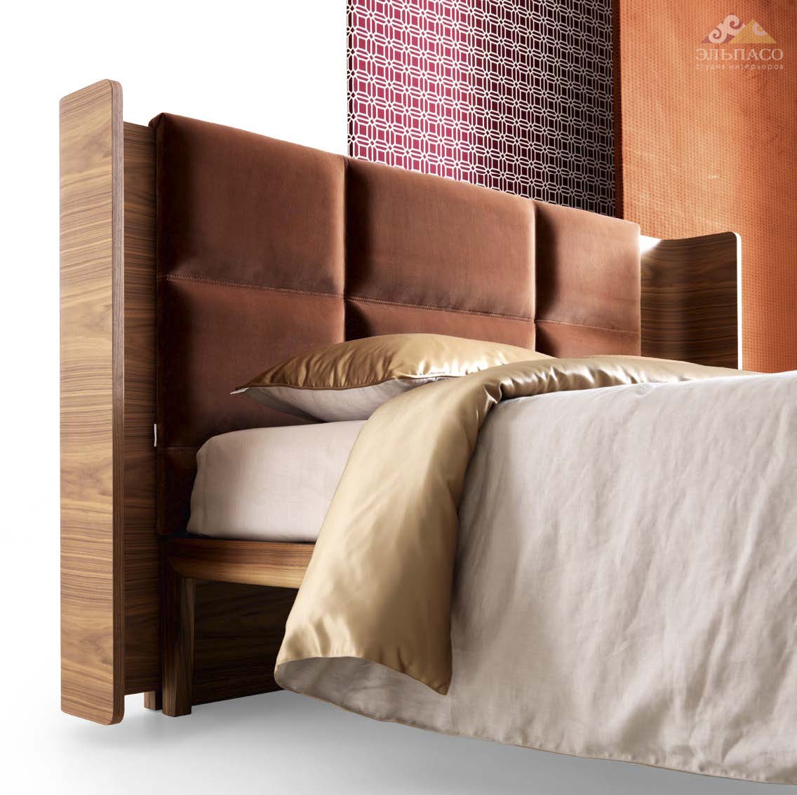 Кровать из коллекции YORK, Итальянской фабрики Grilli. Изголовье из изогнутого дерева цвета Грецкий орех, в сочетании с мягким центром обитым нубуком.