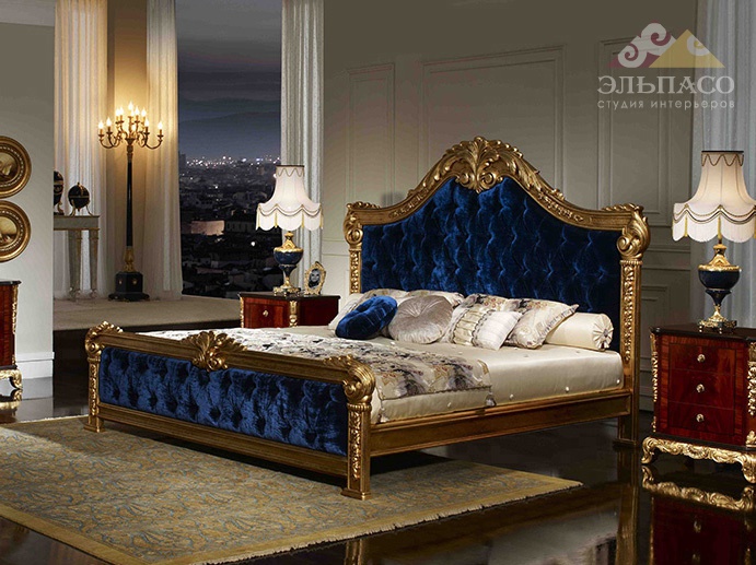 Изысканная кровать Soher Аrt.3898 с большим изголовьем. Каркас модели изготовлен из массива древесины. Поверхности полированные, применена ручная обработка материала. Изголовье и изножье обтянуты плотной тканью из ассортимента фабрики, и украшены стежкой Capitone. Корпус декорирован резными узорами, покрытыми золотой фольгой. Функциональность, стиль и ежедневная практичность.
