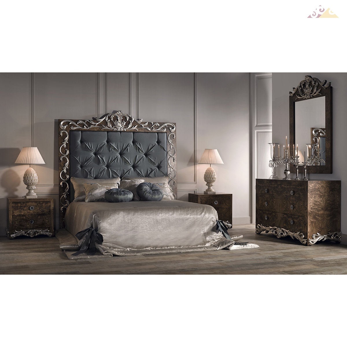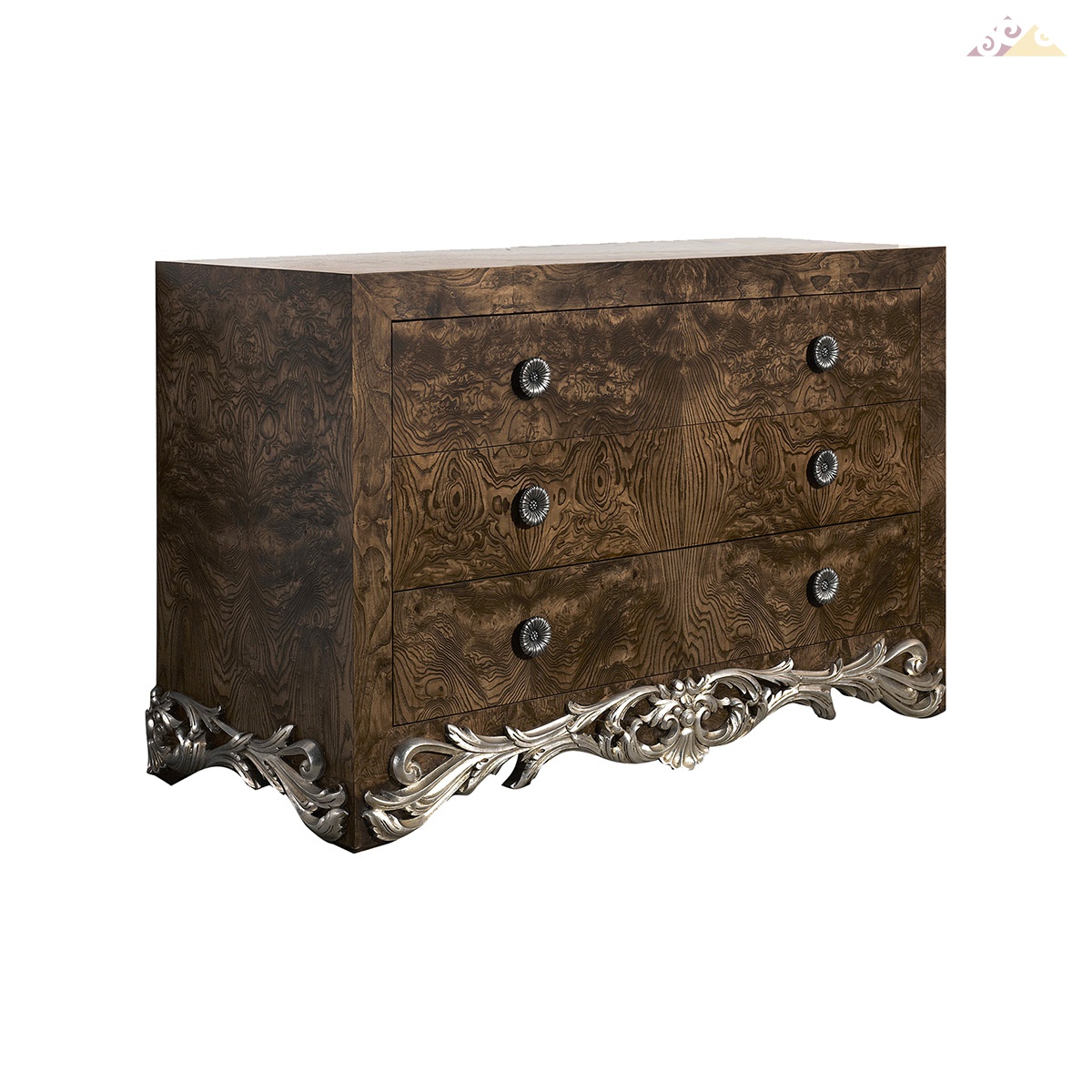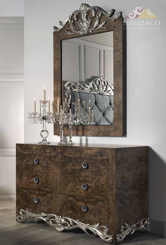 Роскошный комод с выдвижными ящиками. Модель выполнена из корня оливы в отделке – орех, украшена богатым резным декором в серебре. Комод продуман до последней детали в плане функциональности и организации внутреннего пространства. Цветовая палитра согласно каталогу компании.