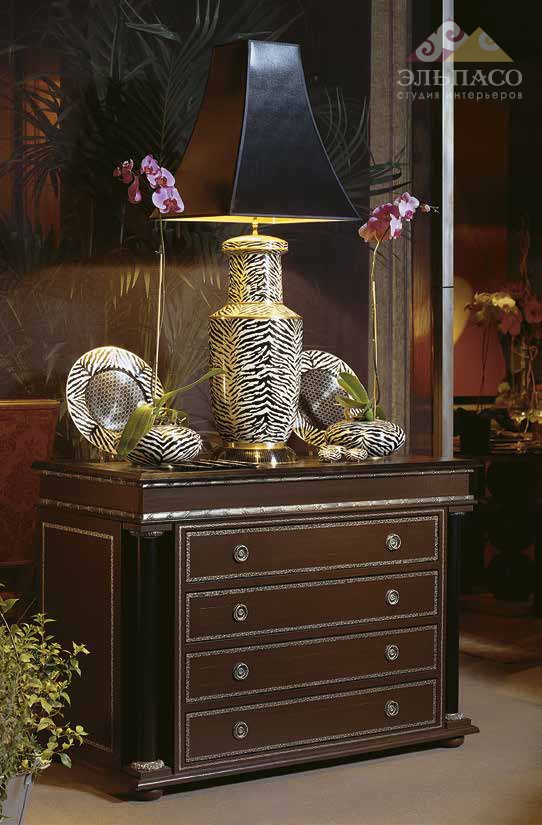 Роскошный комод с выдвижными ящиками выполнен из массива дерева, в отделке орех, украшен элементами из кожи и никеля. Идеальный вариант безукоризненно выполненной дизайнерской мебели. Цветовая палитра согласно каталогу компании.