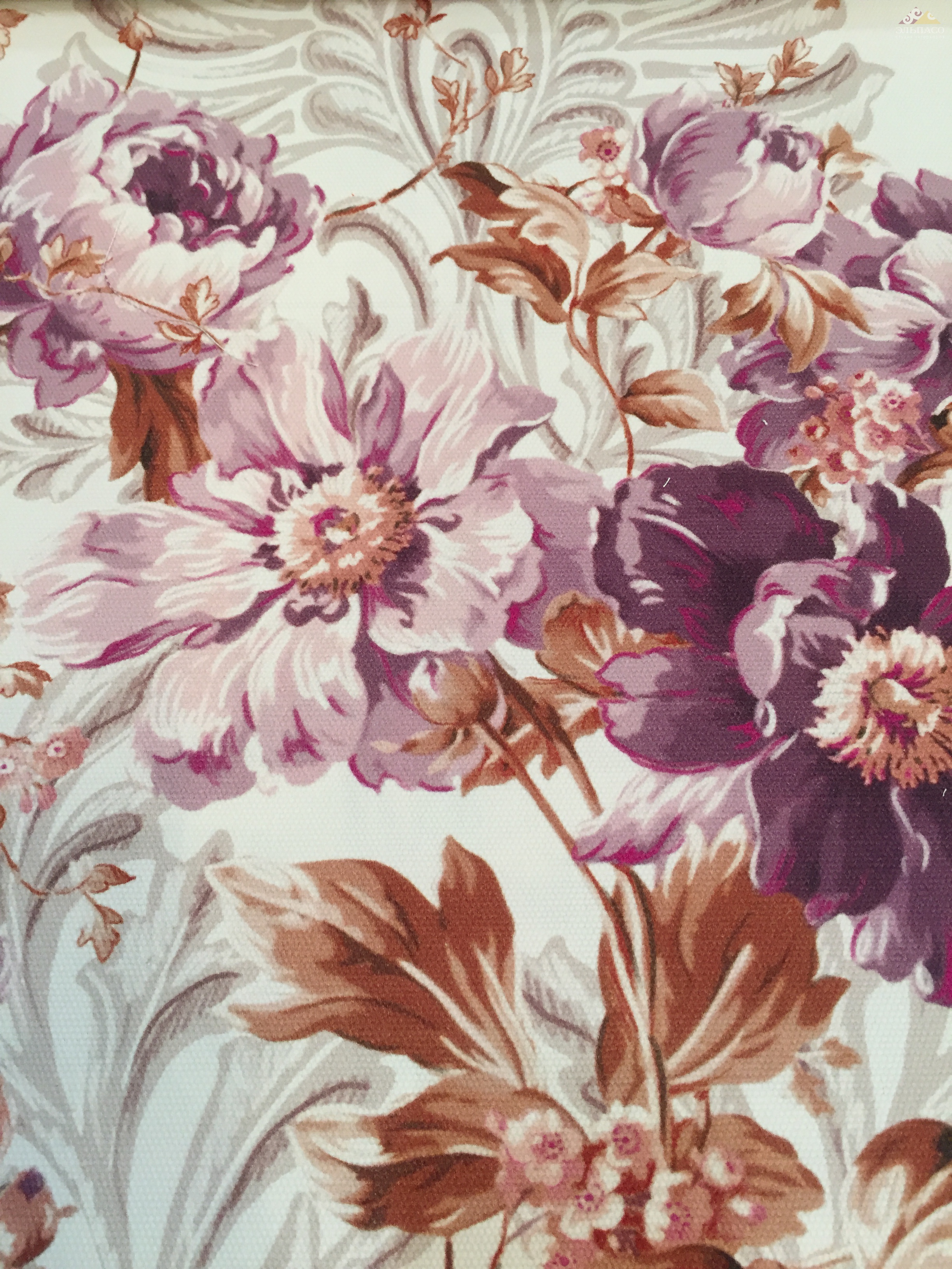 Коллекция печатных тканей с роскошными цветочными букетами в дизайнах, в сочетании с классическими мотивами фонового рисунка, в виде стилизованной пальметты и классического аканта. Печать выполнена на натуральной либо комбинированной основе с содержанием хлопка и льна с винтажным и акварельным эффектами.
