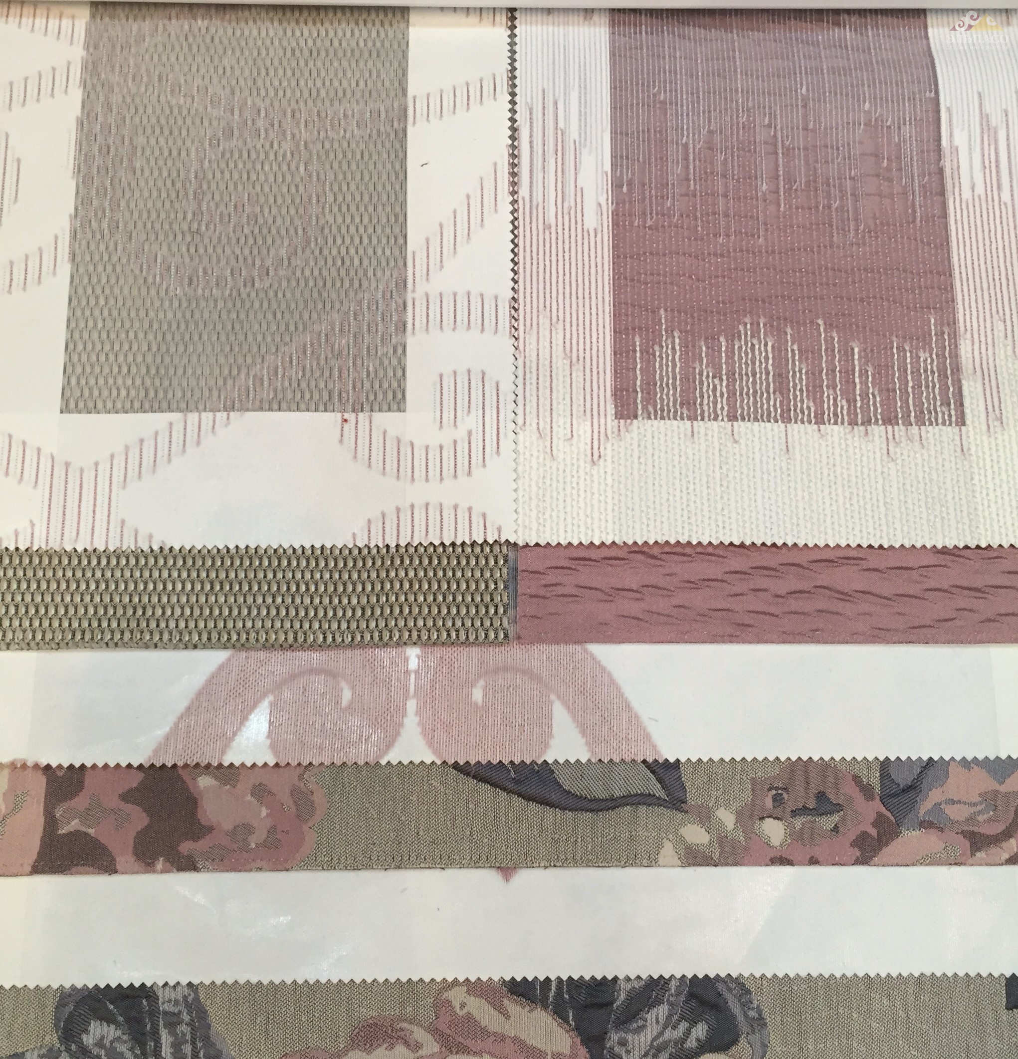 Коллекция составлена из тканей различных фактур, объединенных по принципу единой цветовой гаммы, включающей 6 основных цветовых групп: бирюзовую, терракотовую, розовую, желтую, цвет фуксии и черно-белое сочетание. Тканевый ряд представлен: двойной жаккардовой тканью с крупным цветочным орнаментом в ярких тонах цветовой группы на матовой серо-песочной основе и тканями-компаньонами.
