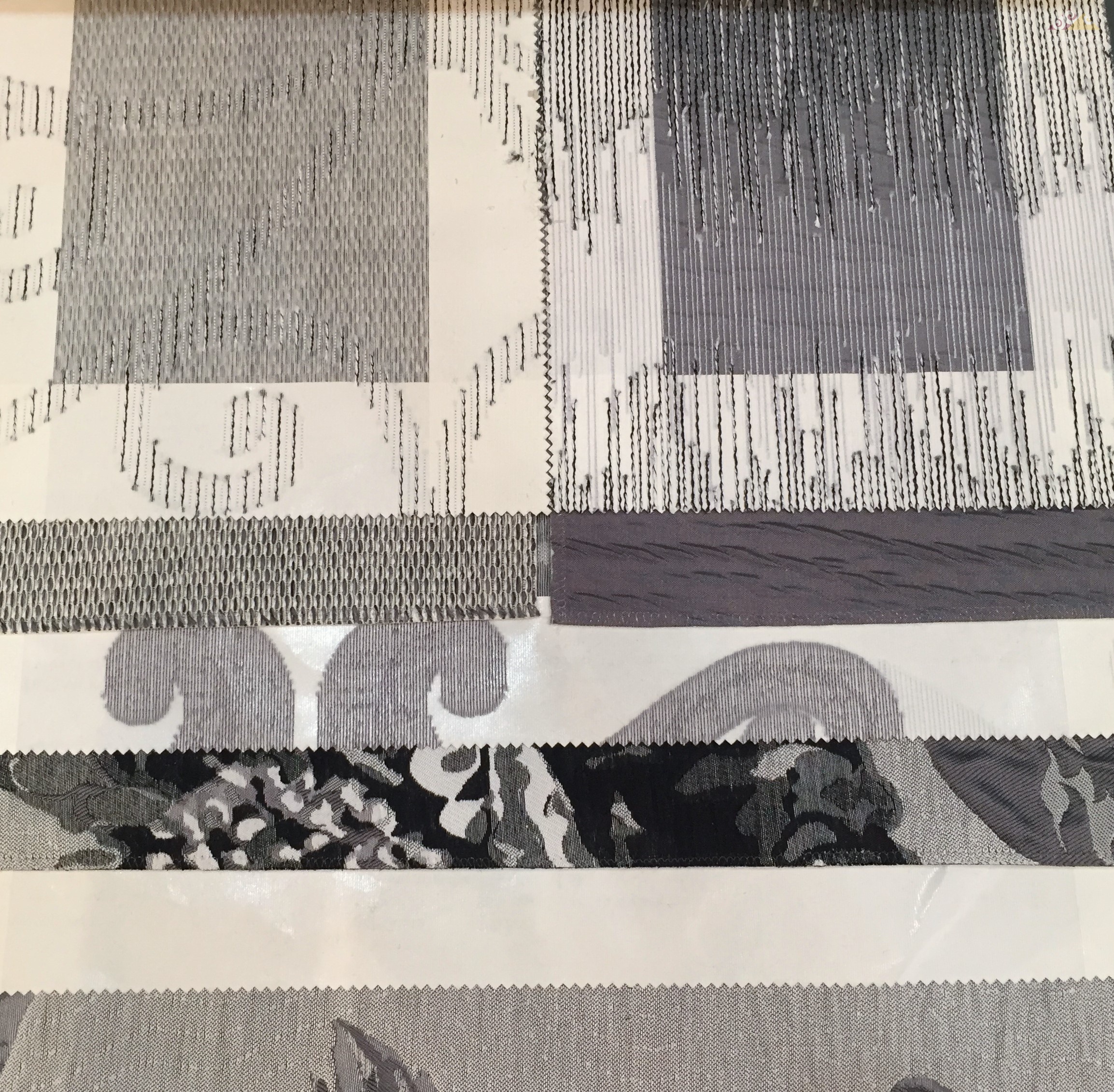 Коллекция составлена из тканей различных фактур, объединенных по принципу единой цветовой гаммы, включающей 6 основных цветовых групп: бирюзовую, терракотовую, розовую, желтую, цвет фуксии и черно-белое сочетание. Тканевый ряд представлен: двойной жаккардовой тканью с крупным цветочным орнаментом в ярких тонах цветовой группы на матовой серо-песочной основе и тканями-компаньонами.