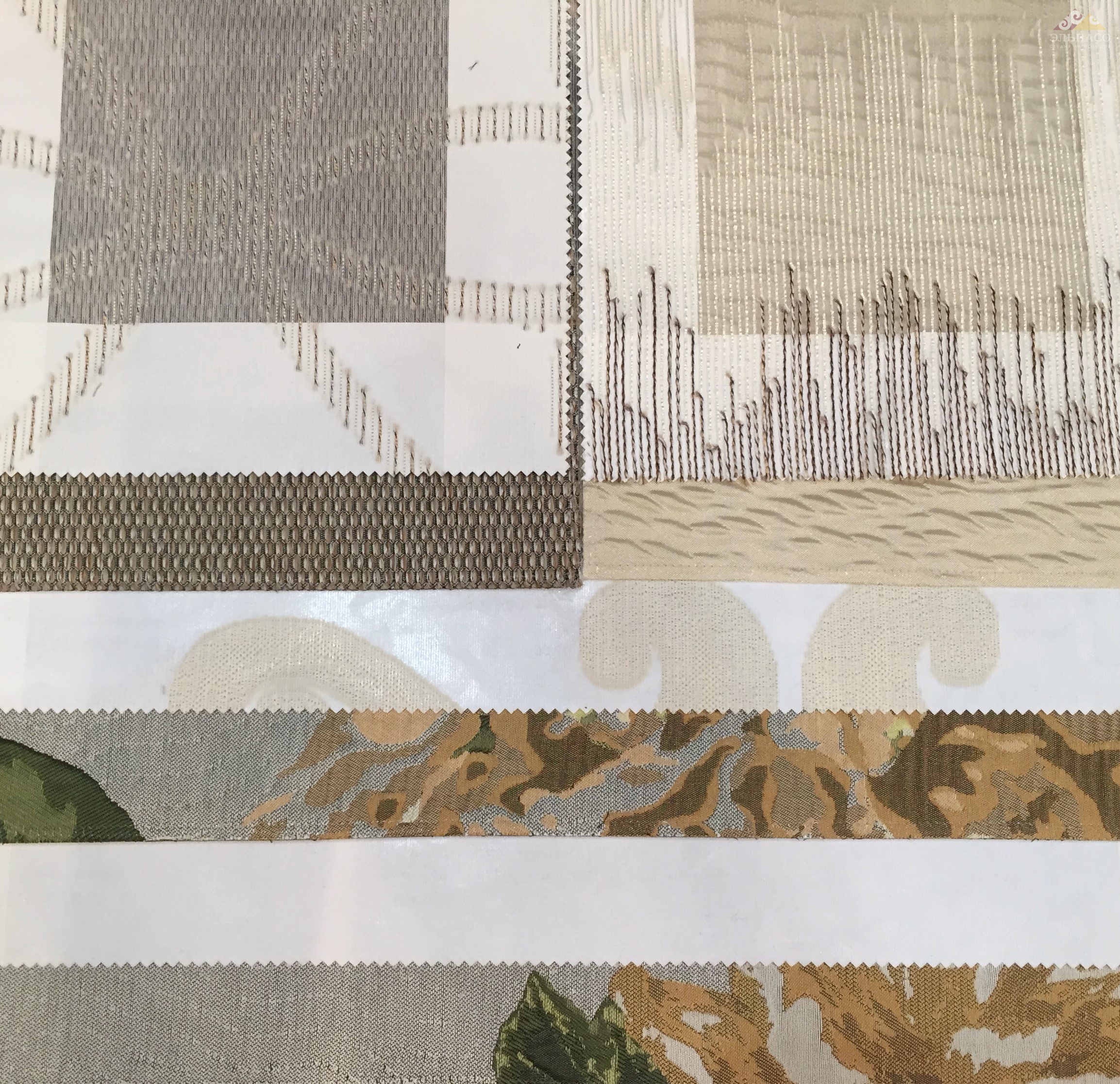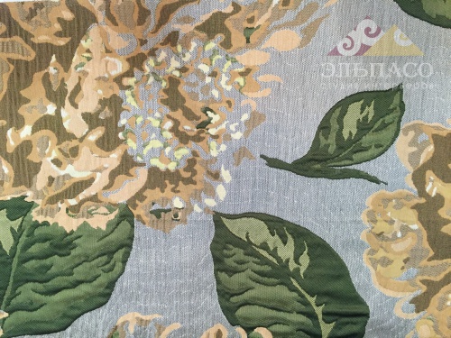 Коллекция составлена из тканей различных фактур, объединенных по принципу единой цветовой гаммы, включающей 6 основных цветовых групп: бирюзовую, терракотовую, розовую, желтую, цвет фуксии и черно-белое сочетание. Тканевый ряд представлен: двойной жаккардовой тканью с крупным цветочным орнаментом в ярких тонах цветовой группы на матовой серо-песочной основе и тканями-компаньонами.