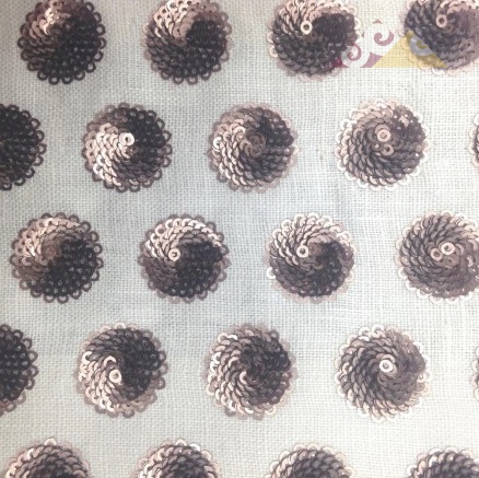 Натуральная льняная портьерная ткань с геометрическим рисунком из пайетак. Хорошо драпируется. Рекомендуется сухая чистка. Ткань станет отличным дополнением к интерьерам в стилях: модерм, современный