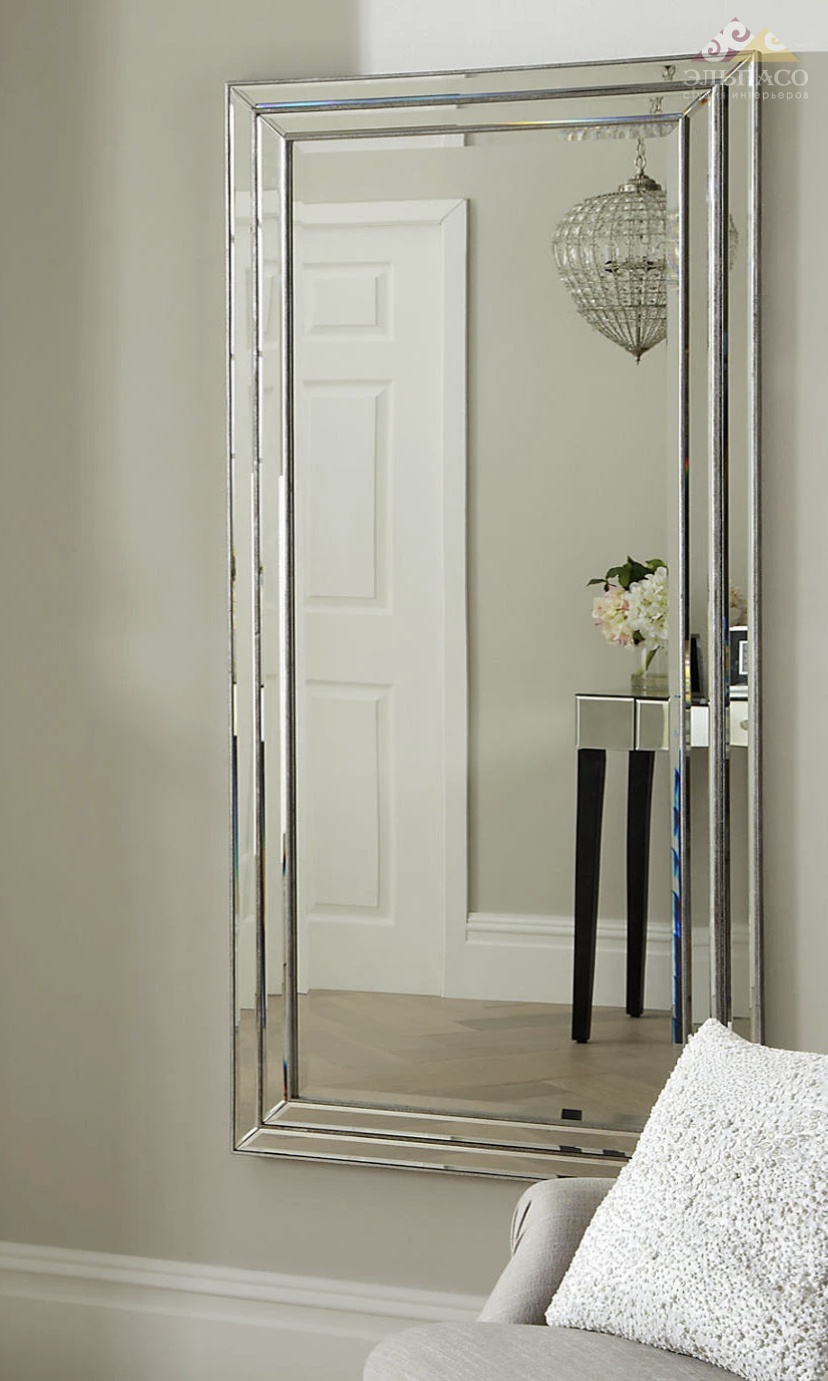 Напольное зеркало "Ар Деко" выполнено в простом, но эффектном дизайне. Большое отражающее полотно облачено в интересный багет в виде трех ступеней одинаковой высоты, тонкие прямоугольные элементы из дерева дополнены зеркальными полосками, благодаря чему рама становится гармоничной и завершенной.