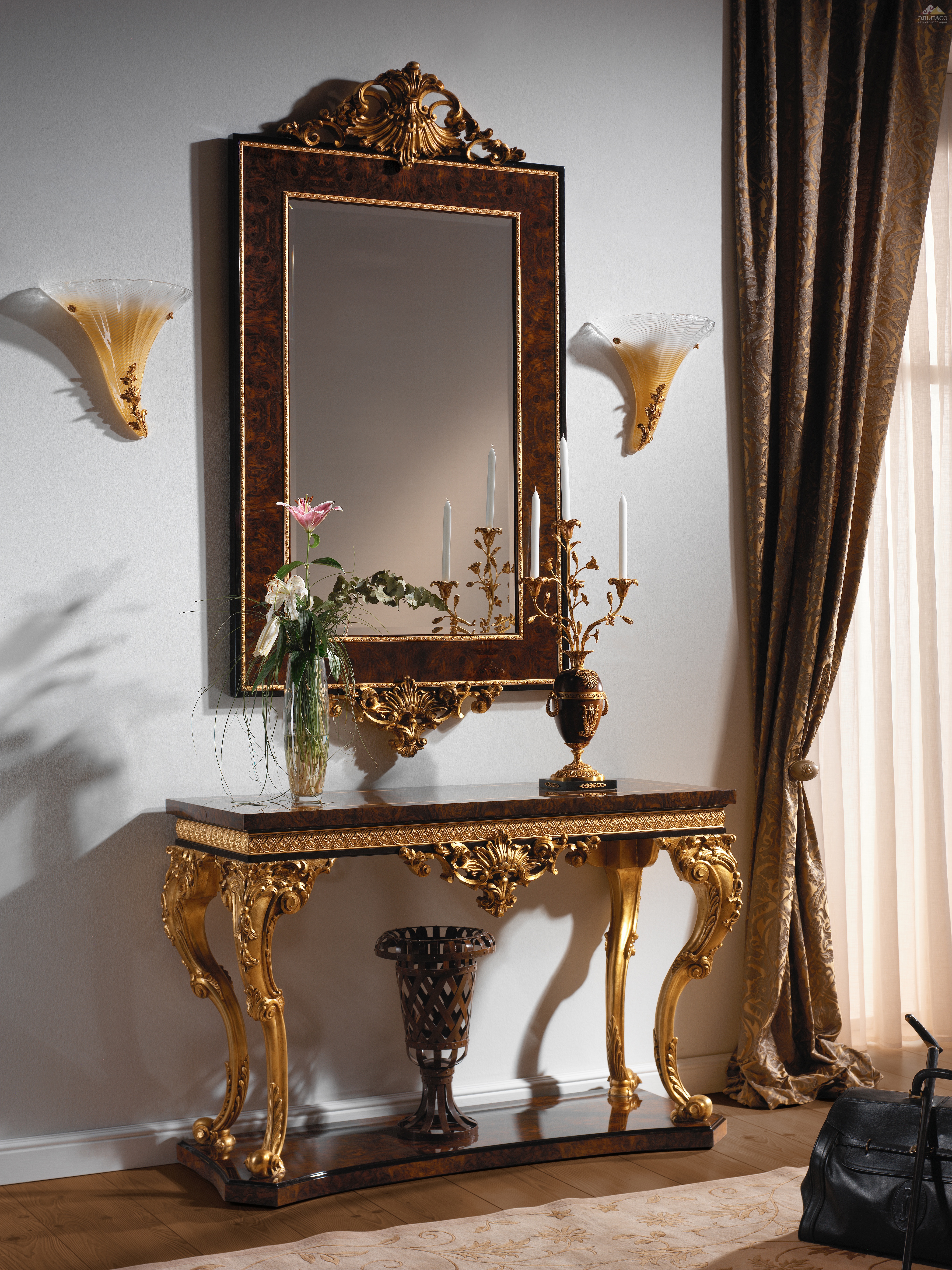 Роскошное зеркало Mariner Аrt.2404 прямоугольной формы с резными украшениями рамы. Каркас модели изготовлен из массива дерева, покрытого натуральным шпоном грецкого ореха и сикоморы. Поверхности полированы вручную, отделаны прозрачным лаком. Корпус декорирован бронзовыми литыми узорами, покрытыми сусальным золотом. Изящность, стиль, уникальность.