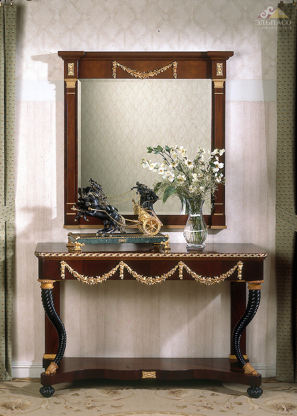 Блестящее зеркало Soher Аrt.3326 квадратной формы с карнизом. Каркас модели изготовлен из массива древесины, покрытого натуральным шпоном красного дерева. Поверхности полированные, покрыты прозрачным лаком. Применена ручная обработка материала. Корпус декорирован литыми бронзовыми и резными узорами, покрытыми фольгой из полированного золота. Уникальность, красота, величие.