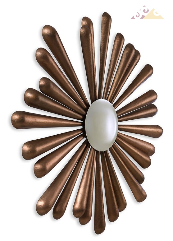Настенное зеркало для разных помещений. Выполнено в виде цветка. Каждый каплевидный лепесток обработан вручную. Изготовлено из меди. Зеркальная поверхность выпуклой формы создает объемный эффект подчеркивающий задумку художника.