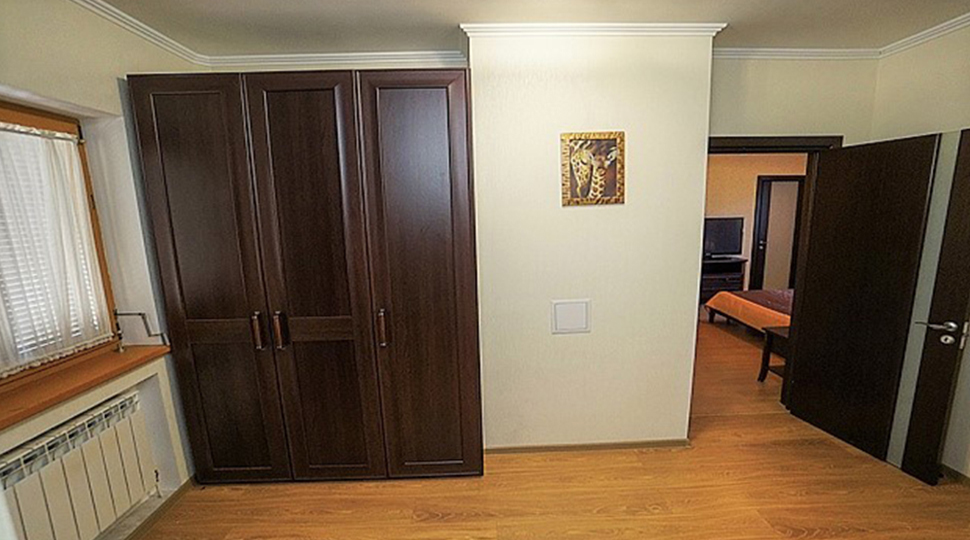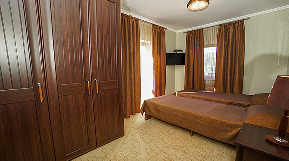 Для меблировки гостиницы "Замок" был определён фиксированный бюджет, в который не вписывалась продукция испанских изготовителей. Нашли компромисс для баланса дизайна и стоимости: изготовили мебель на двух российских фабриках. Все фасады и лицевые поверхности по проектным размерам нам изготовили партнёры из Калининграда. Наполнение и каркасы шкафов: полки, стенки, боковины, задние стенки выполнили на мебельном производстве "Декора-люкс" в Сочи.