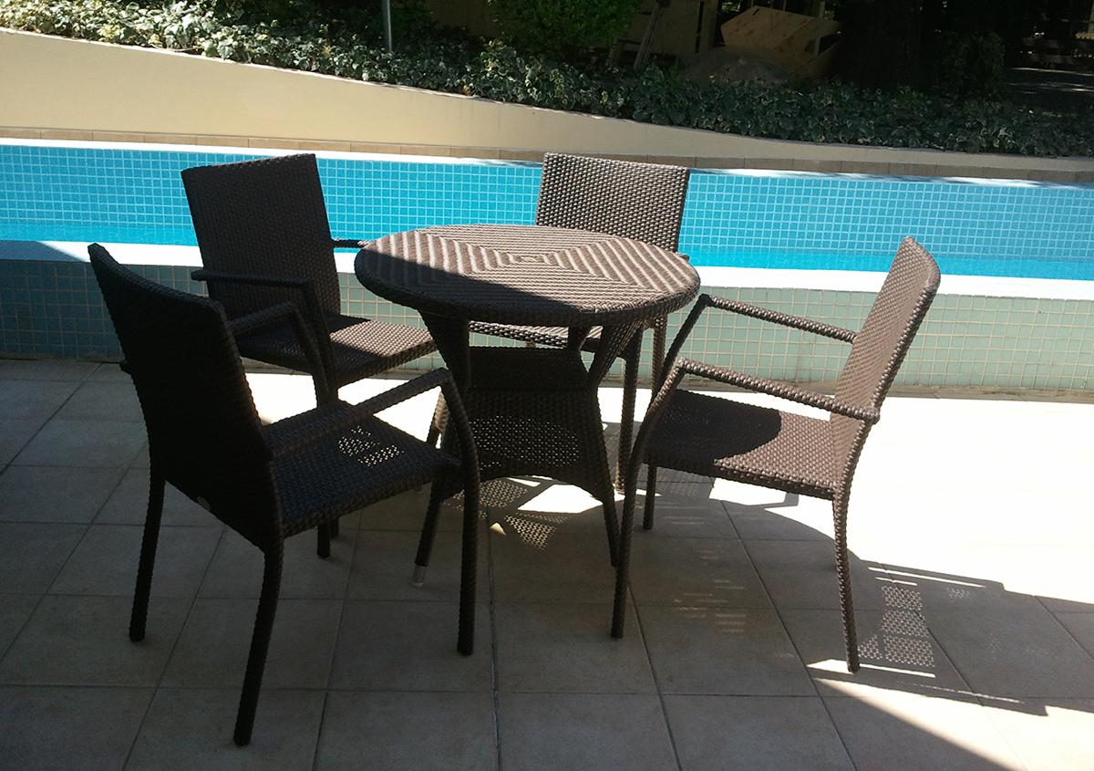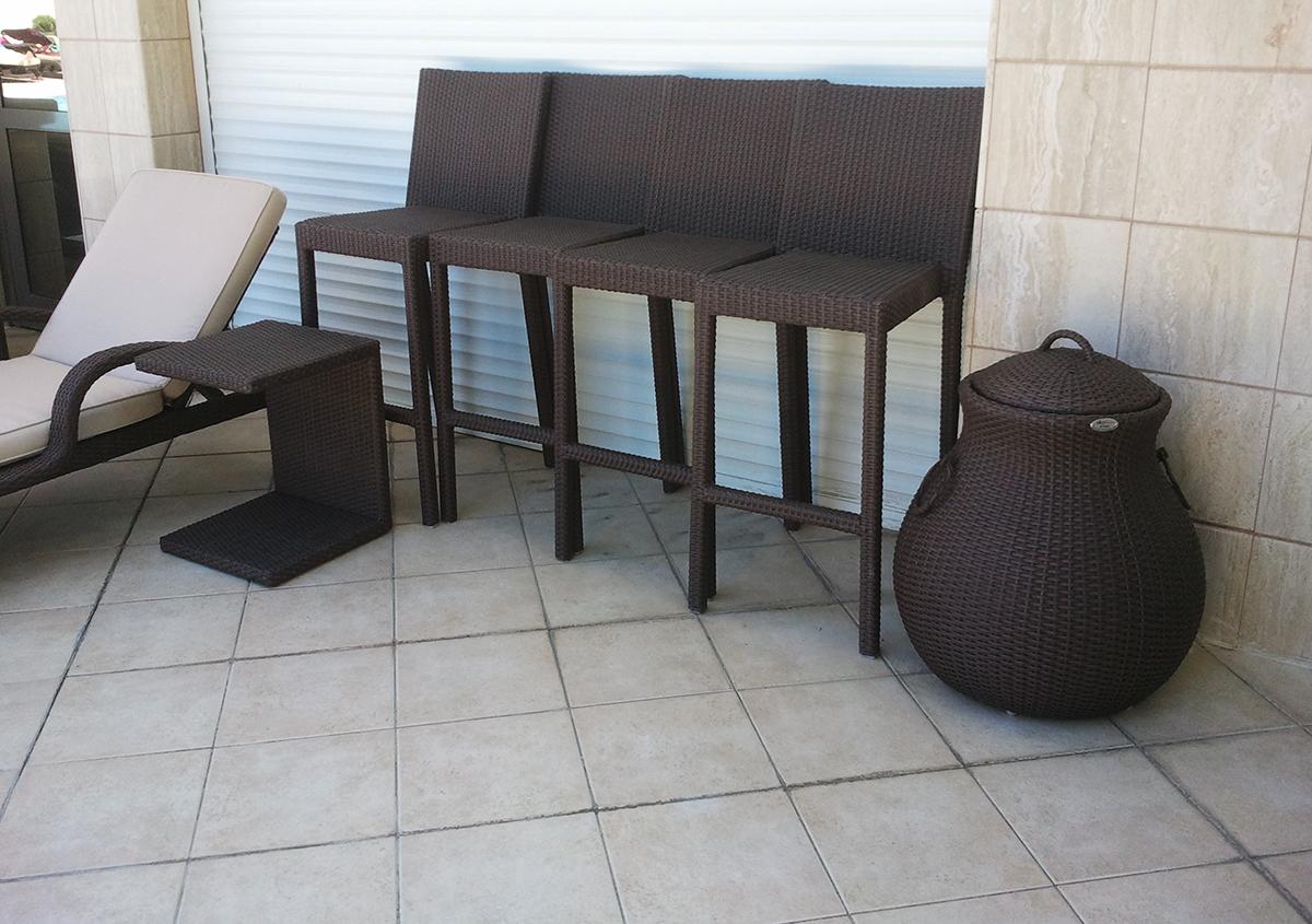 Эта мебель производится из сентетического ротанга, который имеет не большой вес- легко передвигать и мыть, не подвержен воздействию ультрафиолетовых лучей и гарантирует большой срок эксплуатации. Заказчик предоставил нам ТЗ и перечень мебели, включающий шезлонги, барные стойки и стулья, корзины для белья.