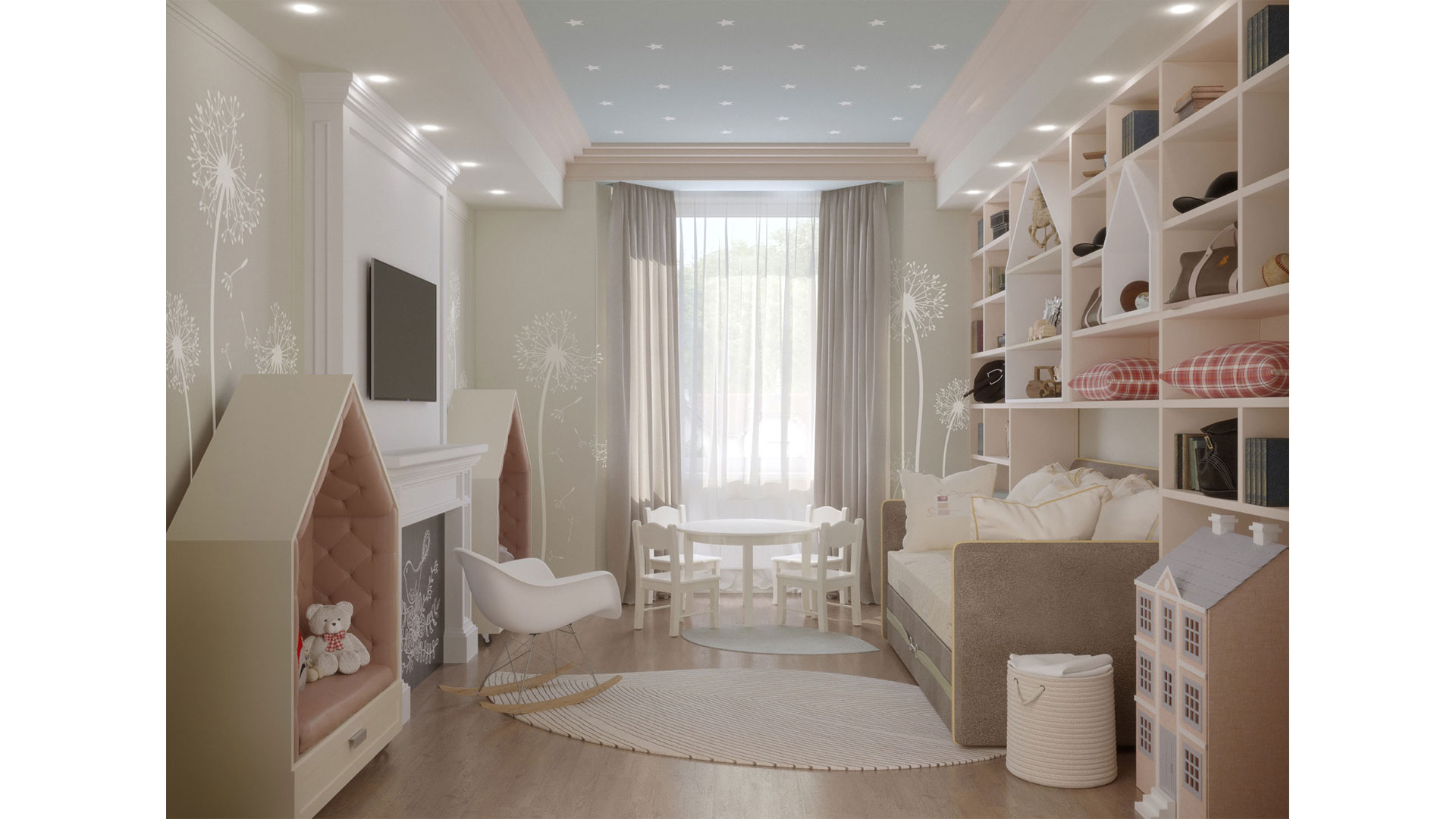 Данный проект разработан для семьи с двумя дочками. Квартира владельцев в Москве в жилом комплексе премиум-класса «ТРИУМФ ПАЛАС».