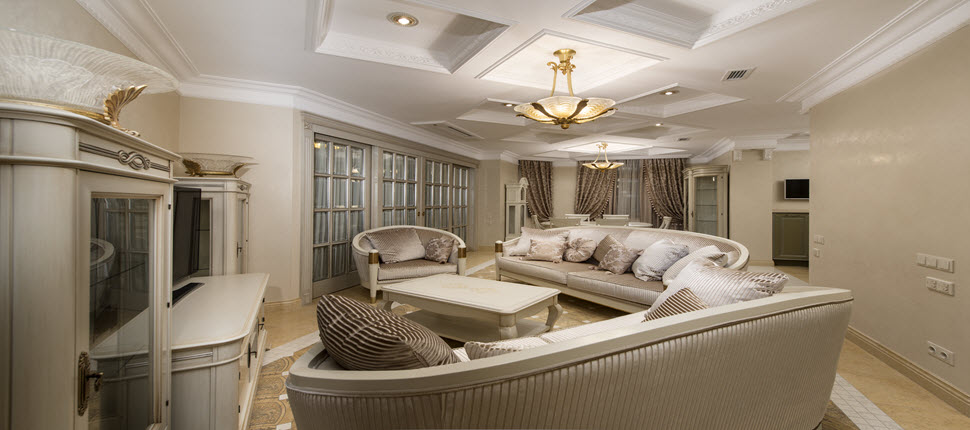 Интерьер четырёхкомнатной квартиры в новом жилом комплексе, стиль нео-классика