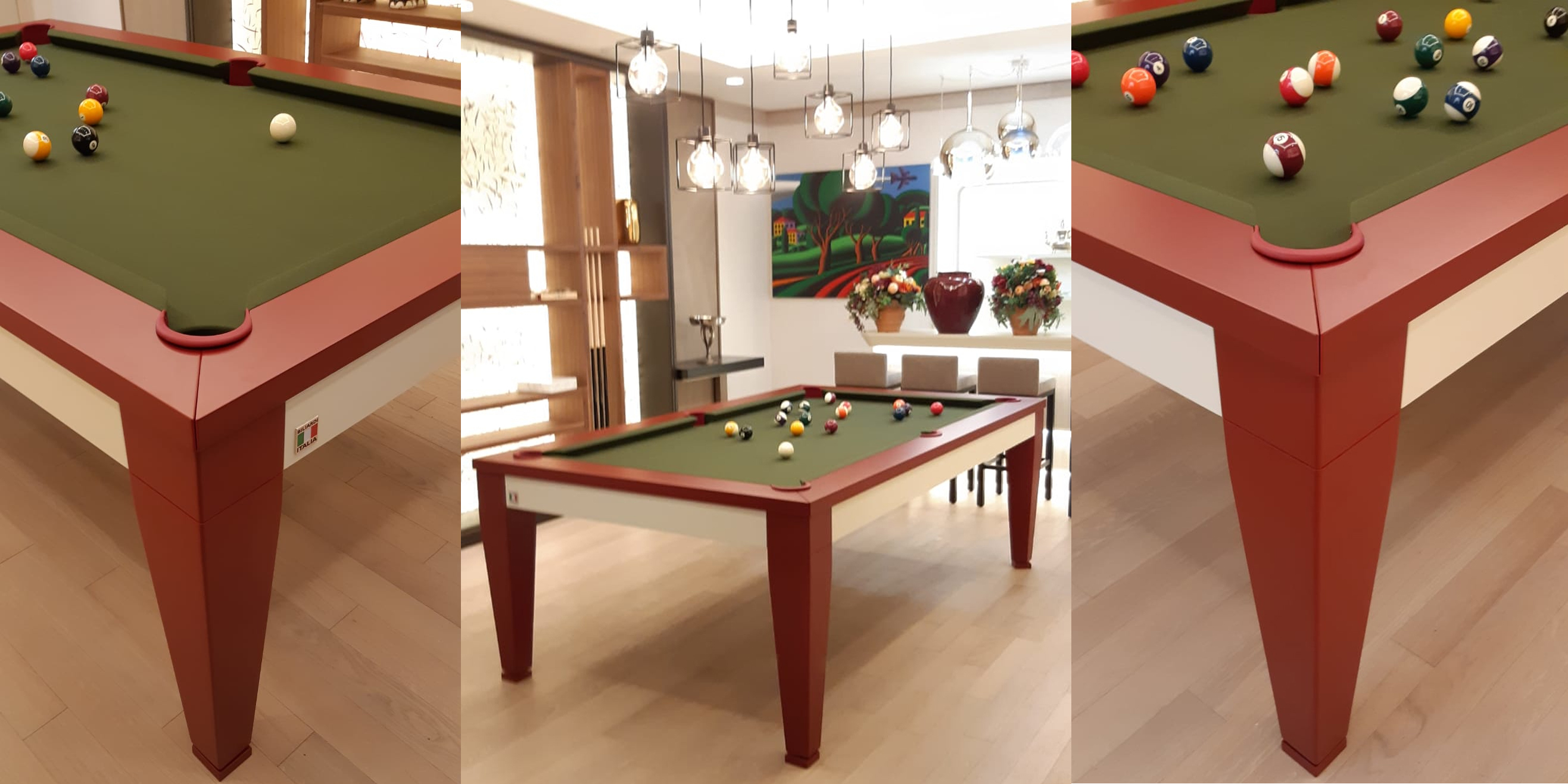 Подобрать необычный бильярд согласно стилистике гостиной с бортами и ножками в цвете бордо- оттенок "cartier".