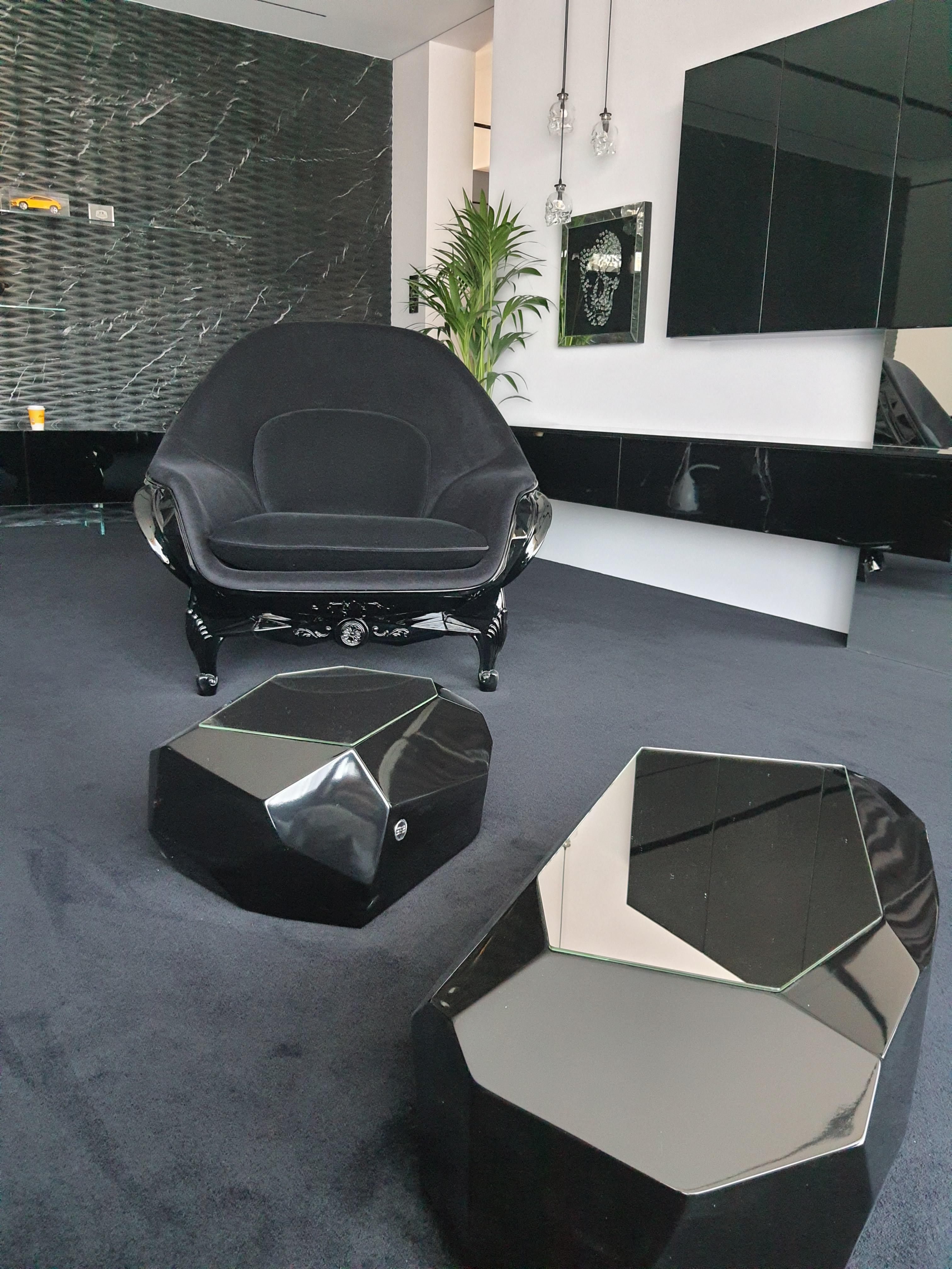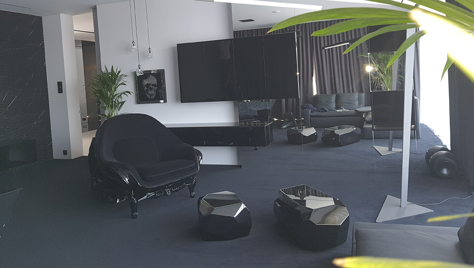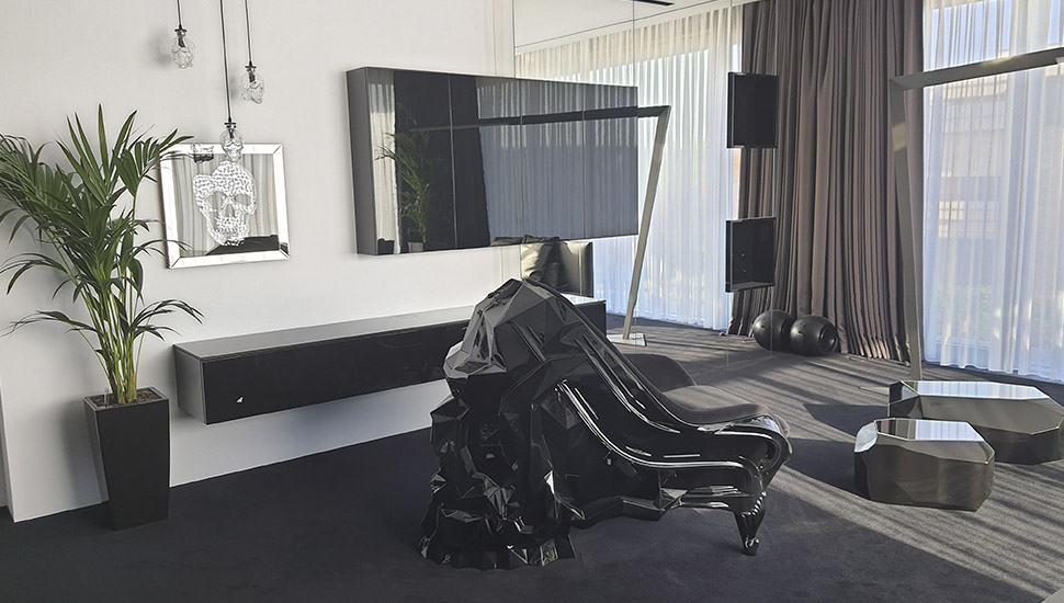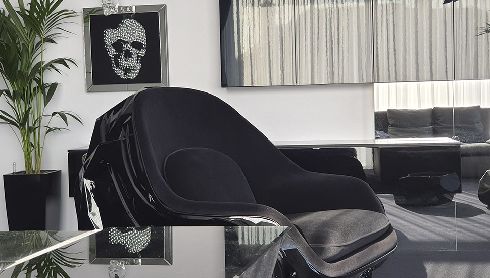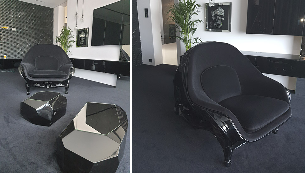 Это первые в мире изделия в стиле "Geometrix" для российских клиентов! Фаворитный образ в интерьерах для владельца домов-skull. Кресло в форме черепа от бренда Harow украшает кабинет хозяина, настенный барельеф, тиснение на сукне покерного стола и скульптуры в форме черепов символизируют победу духа над бренностью бытия.