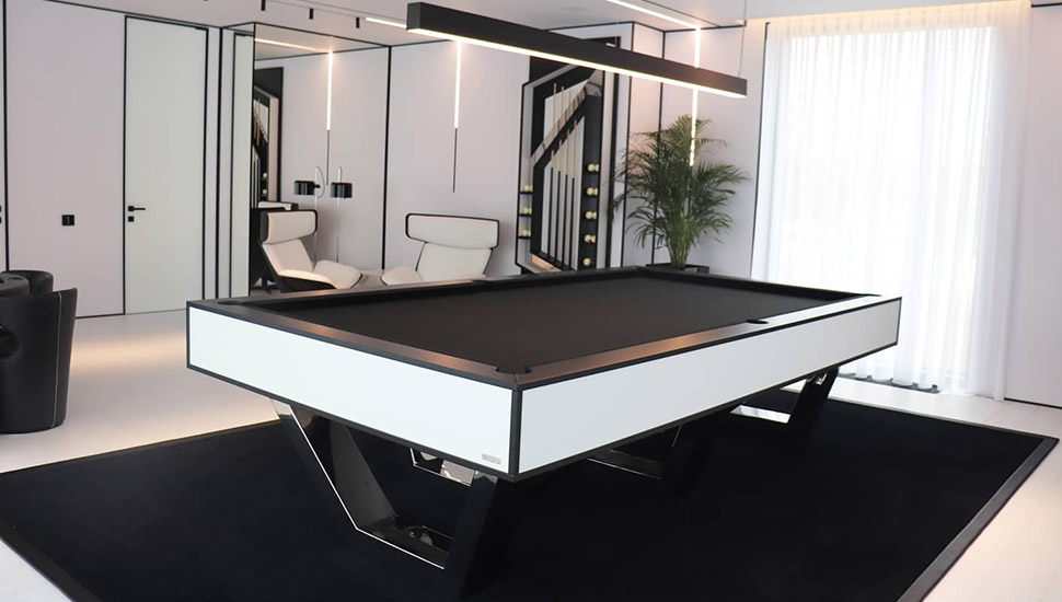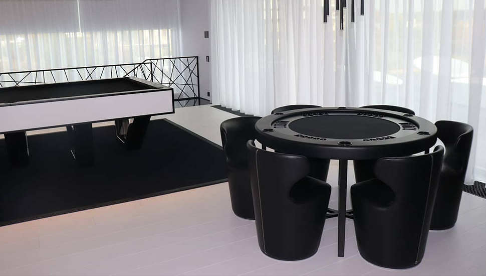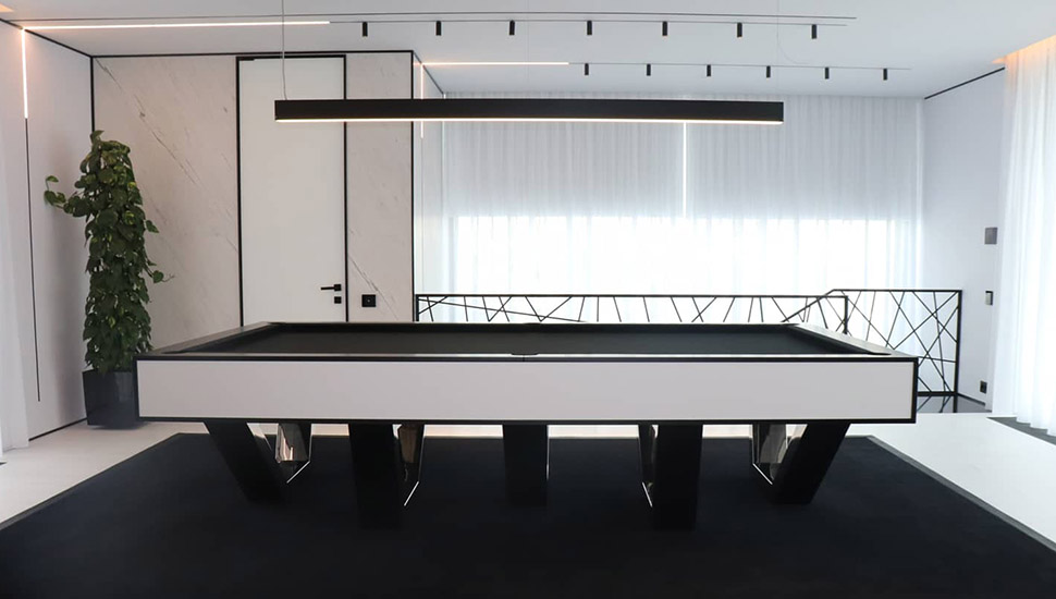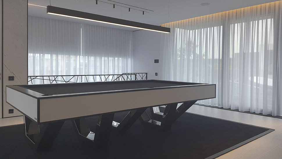Чёрно-белый красавец бильярд Geometrix 21 века на брутальных стальных ногах с компаньонами: киевницей и настольным футболом уже собирают гостей и семью владельцев дома на азартные партии. Между командой Elpaso и хозяйкой дома сложились тёплые доверительные отношения. Дети Elpaso приглашены на шахматный турнир к младшей дочке владельцев в новый дом Ренессанс -парка. Мы благодарны семье клиентов за неординарный проект и развите уникального высокого дизайна в России!